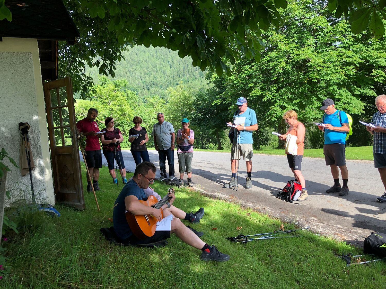 Am nächsten Morgen, 6.7.2023, gleich nach dem Morgengebet, pilgerten wir Richtung Gscheidlhöhe, Kaltenbach und nach rund 16km kamen wir in Frein an der Mürz an. Alle freuten sich schon auf den bevorstehenden Gottesdienst und auch die Mesnerin hat uns schon erwartet. Die Messe wurde durch Pfarrer Shinto sehr schön und besinnlich gestaltet. „Geh mit uns auf all unseren Wegen“ war zu jeder Zeit spürbar. Das Pilgern im Glauben innerhalb der Gemeinschaft, mit dem Ziel, unserer Mutter Gottes näher zu kommen, war noch einen Tag von uns entfernt. Den Abend und die Nacht verbrachten wir bei der Jausenstation Leitner. Nach dem Abendessen wurde der Tag mit einem sehr schönen Liederabend und guter Stimmung beendet.