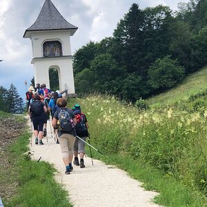 Unter dem Motto „Lasst uns miteinander, gehen, beten, singen und feiern“ fand heuer die 33. Fußwallfahrt nach Mariazell der Pfarre Kobersdorf statt. 18 Pilgerinnen und Pilger, Begleitfahrzeug und natürlich unser Pfarrer Shinto trafen sich am Mittwoch, dem 5.7.2023 und nach einer kurzen Andacht mit Reisesegen konnte die Wallfahrt beginnen. Diesmal fuhren wir mit dem Zug nach Puchberg am Schneeberg und die erste Etappe führte uns u.a. über die Maumauwiese und Bacherlwirt durch wunderschöne Landschaften ins Preintal. Rosenkranz beim Gehen in der Gruppe zu beten ist eine tolle Erfahrung. Das Wetter war gerade richtig und trotz einem kurzen Gewitterregen war die Stimmung sehr gut. Gut 30 km waren geschafft und die Nacht verbrachten wir auf einem Reiterhof im Preintal.