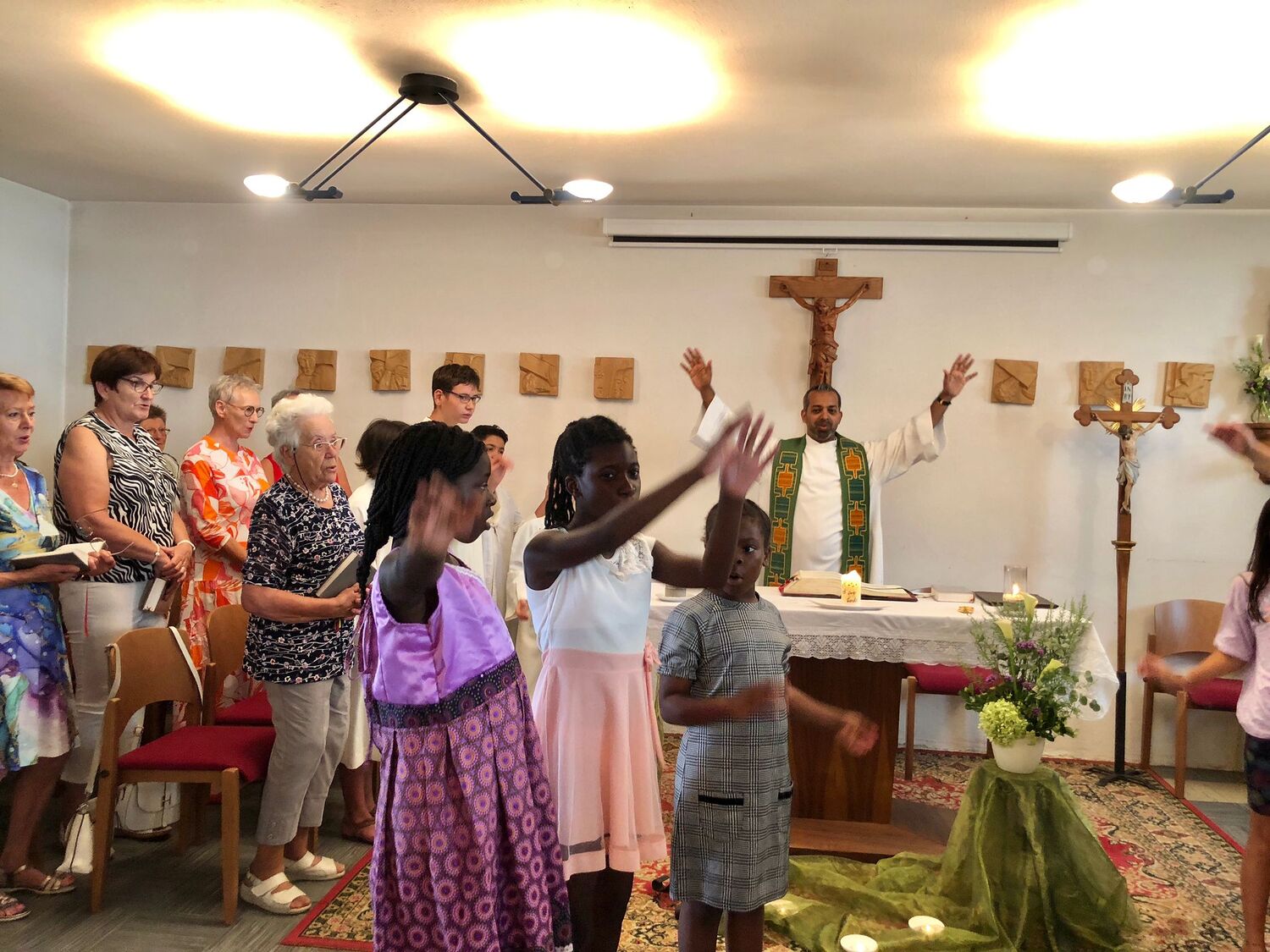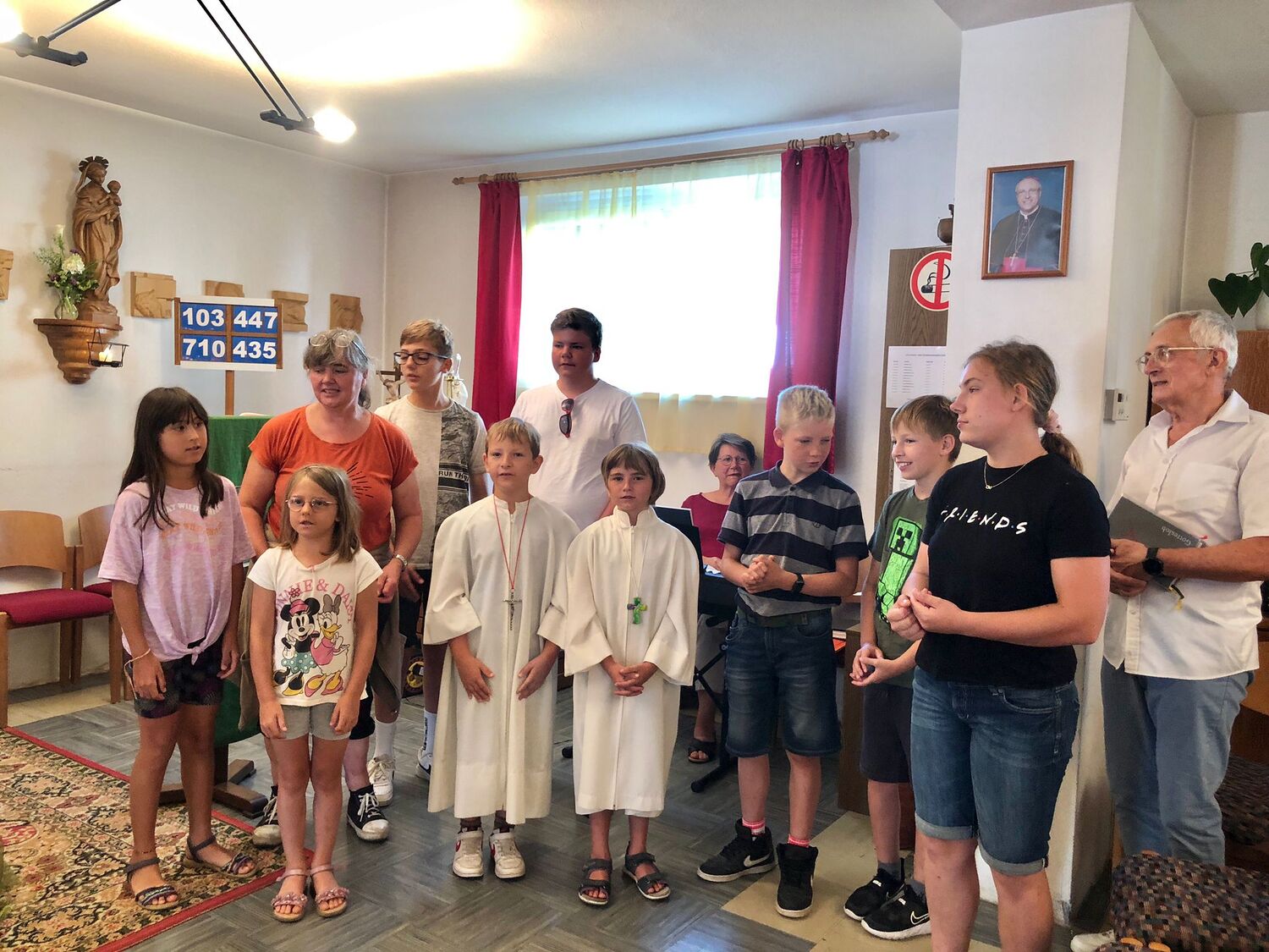 Die Einladung zu Kommen von Pfarrer Shinto freute uns sehr. Nachdem wir einmal wegen Schlechtwetter absagen mussten, gelang es diesmal sogar sehr spontan. Wir, das sind die Kinder, Jugendlichen und Sozialpädagog/innen der Sozialtherapeutischen Wohngemeinschaft Pronegg aus Kotezicken im Südburgenland. Eine lange Freundschaft verbindet uns mit Pfarrer Shinto. Unsere Ministranten (auch in Kotezicken) waren sofort dabei zu ministrieren und kurz vorher abgesprochen gestalteten wir den Gottesdienst mit. Ratsvikarin Christa spielte mit der Gitarre „Gottes Liebe ist so wunderbar....“ , dieses Lied begleitete unsere Kinder auch durch die Corona-Zeit. Die Predigt von Pfarrer Shinto war passend, denn wir haben einen großen Garten und die Kinder helfen beim Pflegen fleißig mit. Nach dem Gottesdienst tobten sich die Kinder ein wenig aus, bis Mittagessen kam. Danke der Pfarre Kobersdorf für die nett angerichteten Tische und Getränke, sowie für Kuchen und Kekse. Danach ging es zum Naturbadeteich! Die Abkühlung tat allen gut und als Abschluss gingen wir mit Pfarrer Shinto noch auf ein Eis!
