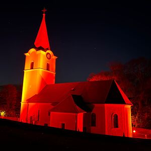Auch unsere Kirche in Kobersdorf strahlte in schönem ROT.