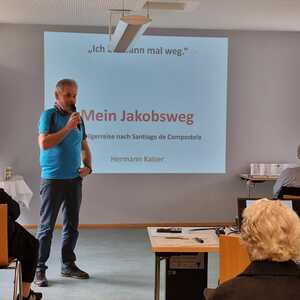 Viele interessierte Zuhörer:innen waren gekommen, um seinen persönlichen Erfahrungen, Herausforderungen und spirituellen Eindrücken zu lauschen. Der Vortrag gab nicht nur Einblick in die körperlichen und logistischen Aspekte einer solchen Pilgerreise, sondern auch in die inneren Beweggründe und Erkenntnisse, die Hermann unterwegs gesammelt hat.