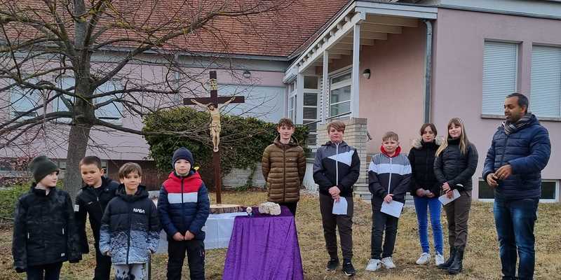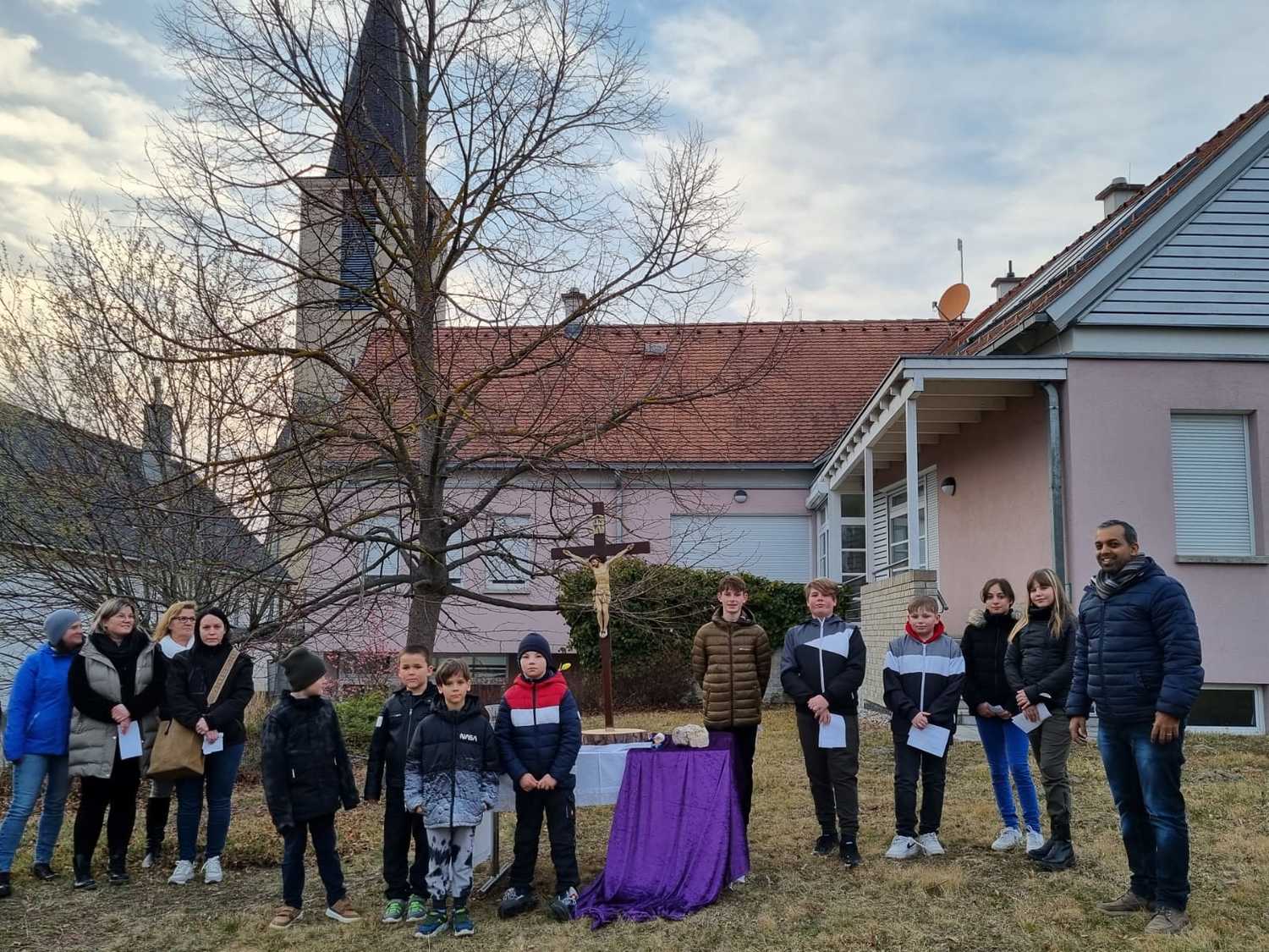 Am Donnerstag, dem 17. März haben sich die Erstkommunionkinder und Firmlinge im Pfarrhofgarten Lackenback getroffen um den Leidensweg Jesu zu betrachten. Jede Station wurde nach einer kurzen Beschreibung mit einem für Kinder gut nachvollziehbarem Thema in Verbindung gebracht und in unseren Alltag übersetzt.