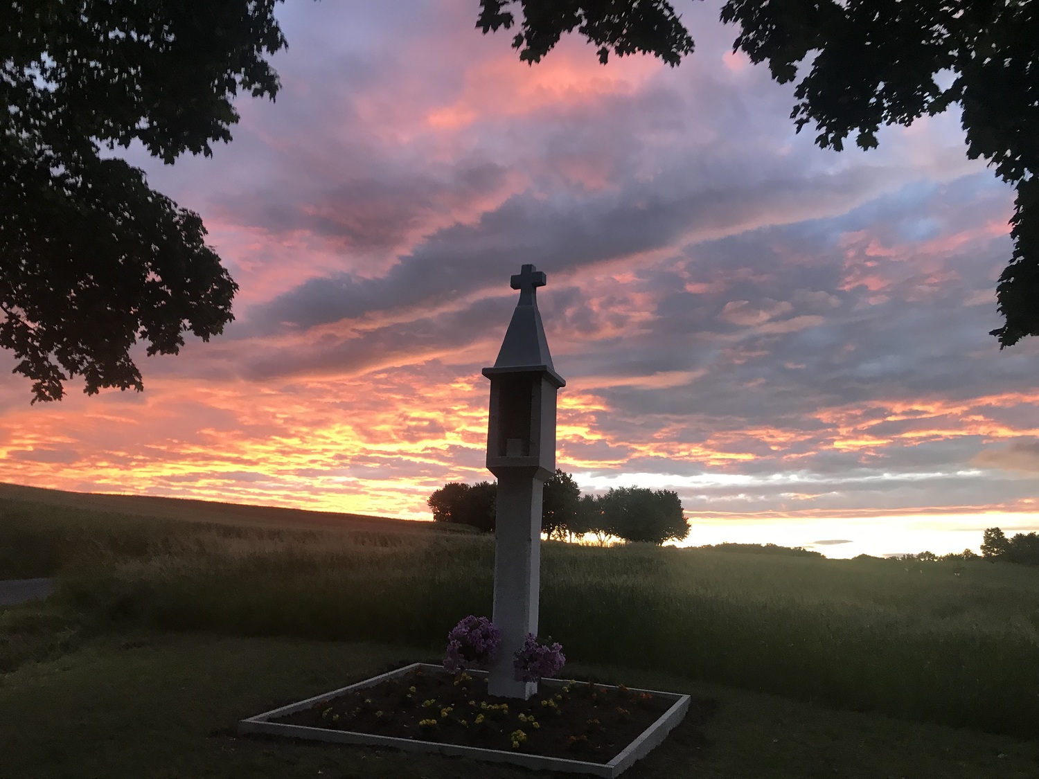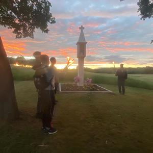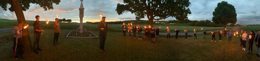 Bevor die Gruppe dann mit ihren Fackeln zur Wanderung aufbrach, gab es noch eine kleine Jause. In wunderbarer Abendstimmung mit bester Laune marschierten die Jugendlichen zur Florianisäule, wo der stimmungsvolle Abend mit einer Andacht endete.