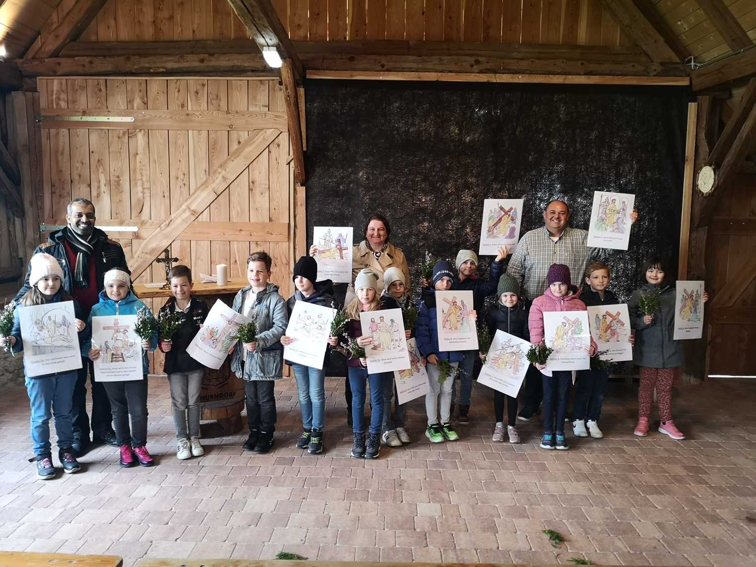 Am Palmsonntag luden die Erstkommunionkinder des Pfarrverbandes Hl. Nikolaus - Kobersdorf, Weppersdorf und Lackenbach zusammen mit ihren Eltern zu einer gemeinsamen Kreuzwegandacht, die im Freien geplant war, jedoch aufgrund des schlechten Wetters in den „Stadl“ verlegt werden musste.