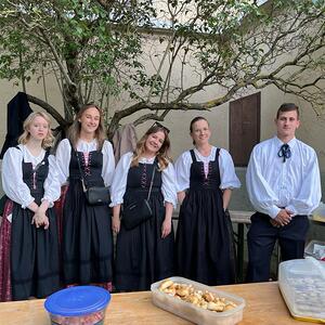 Nach kurzem Fußweg in Richtung evangelische Kirche wurden wir mit Glockengeläut am Martin Luther Platz von den Kindern empfangen. Eine köstliche Agape war bereits von der katholischen Jugend vorbereitet. Nach dem Steigen der Luftballone zum Zeichen des Friedens wurde in der evangelischen Kirche das weitere Programm dargeboten.