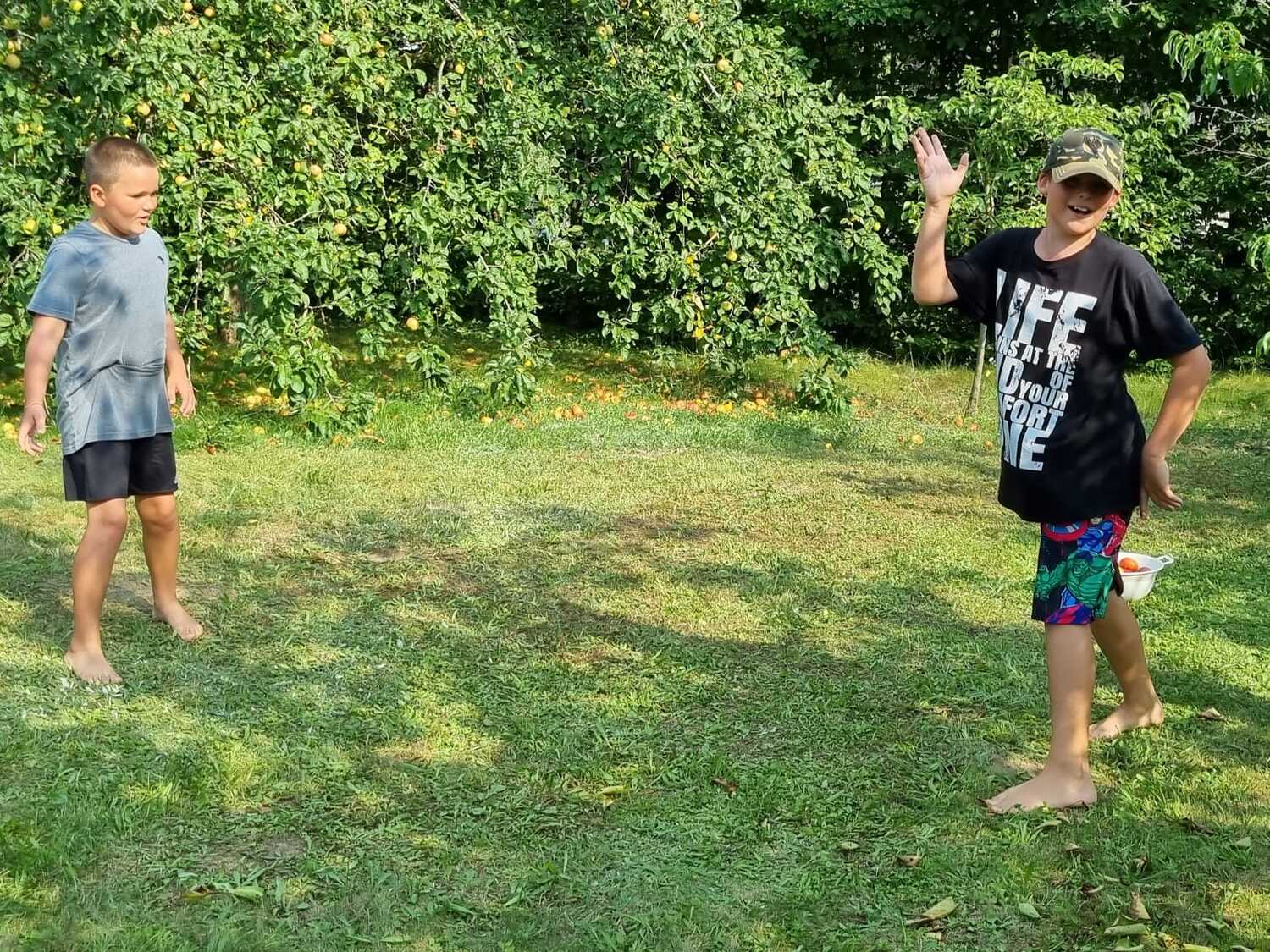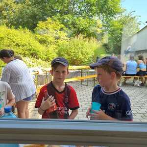Um 15 Uhr versammelten sich alle im Pfarrhof Lackenbach. Nach einer Begrüßungsrunde spielten wir im schattigen Garten. Wir hatten für die Kinder verschiedene Spiele aufgebaut z.B: Sackhüpfen, Dosen werfen, Fußball, Boccia, Federball, Ball über die Schnur, Uno…. . Doch besonders Spaß machte unsere Wasserbombenschlacht, wo niemand trocken blieb –sogar Herrn Pfarrer Shinto haben wir erwischt. J