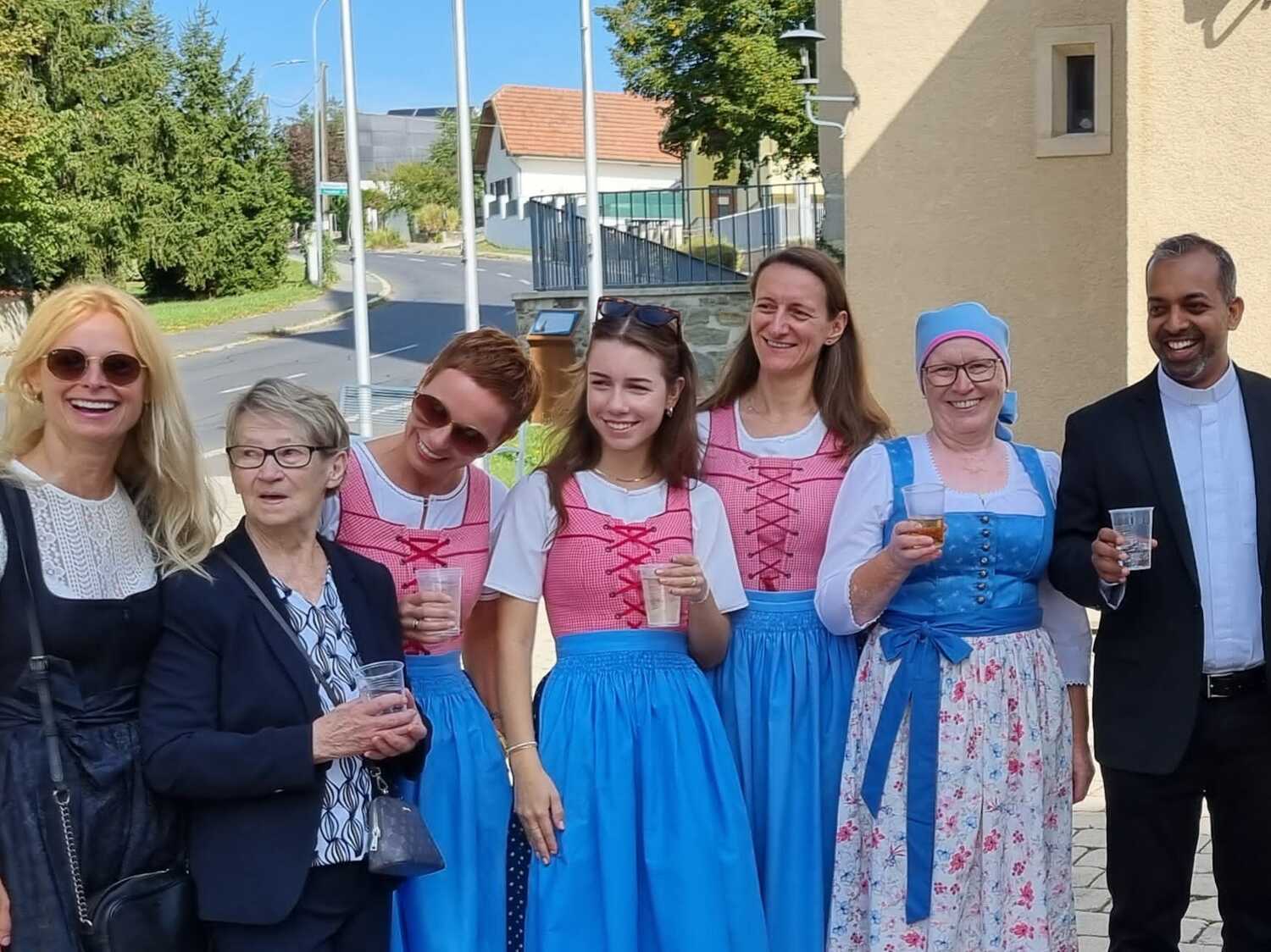 Bei strahlendem Wetter konnten die Gottesdienstbesucher noch bei einer Agape verweilen und bei Kuchen, Gebäck und Wein kam es noch zu einigen netten Begegnungen.