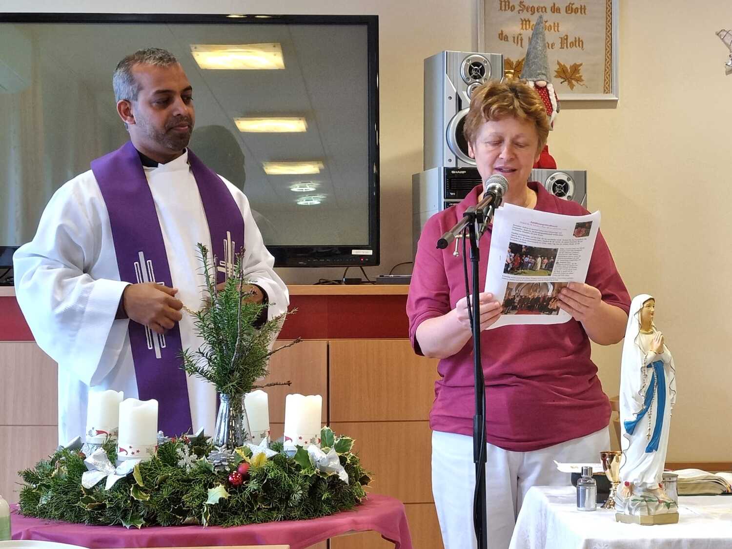 Pfarrer Shinto brachte Barbarazweige mit und ging nicht nur auf den Brauch dieser Zweige ein, die am 4. Dezember, dem „Barbaratag“ geschnitten werden und ins Haus in die Vase kommen, sondern er erzählte auch vom Leben der Hl. Barbara.