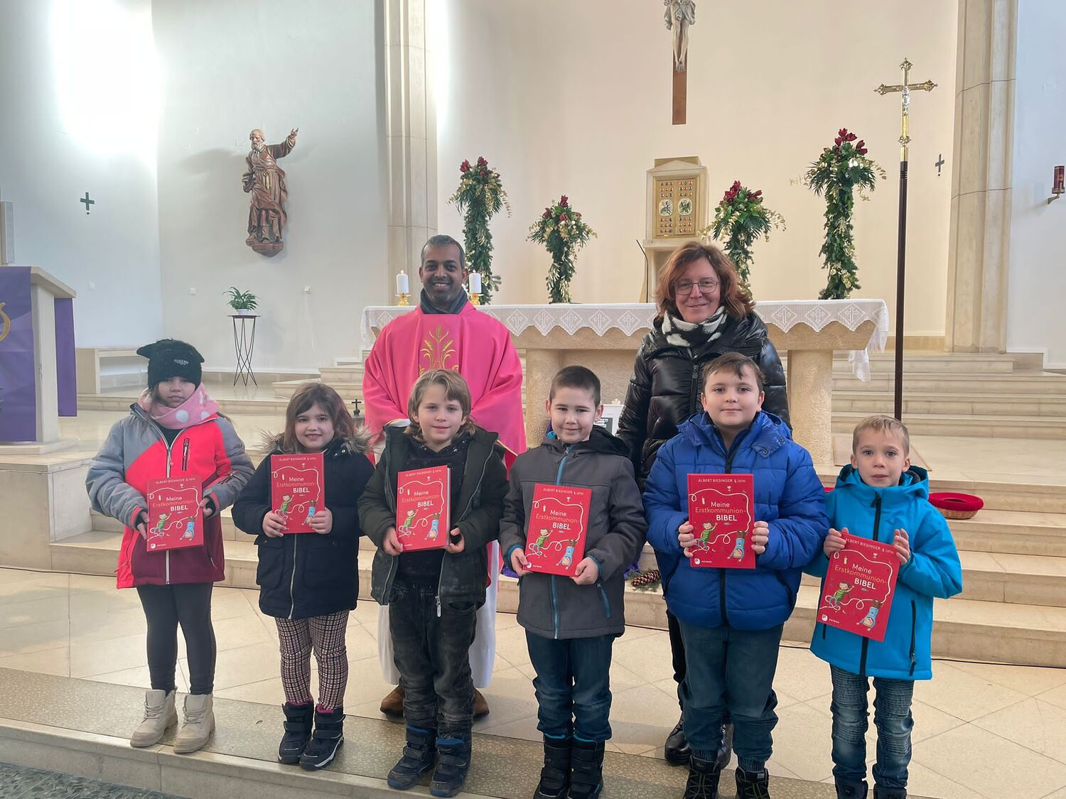 „ In einem Boot – mit Jesus“ so lautet das diesjährige Motto unserer sechs Erstkommunionkinder, die sich am dritten Adventsonntag vorgestellt haben. Mit wie viel Begeisterung die Kinder den Gottesdienst mitgestalteten, davon konnten sich die Messbesucher/innen der vollbesetzten Kirche selbst überzeugen.