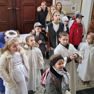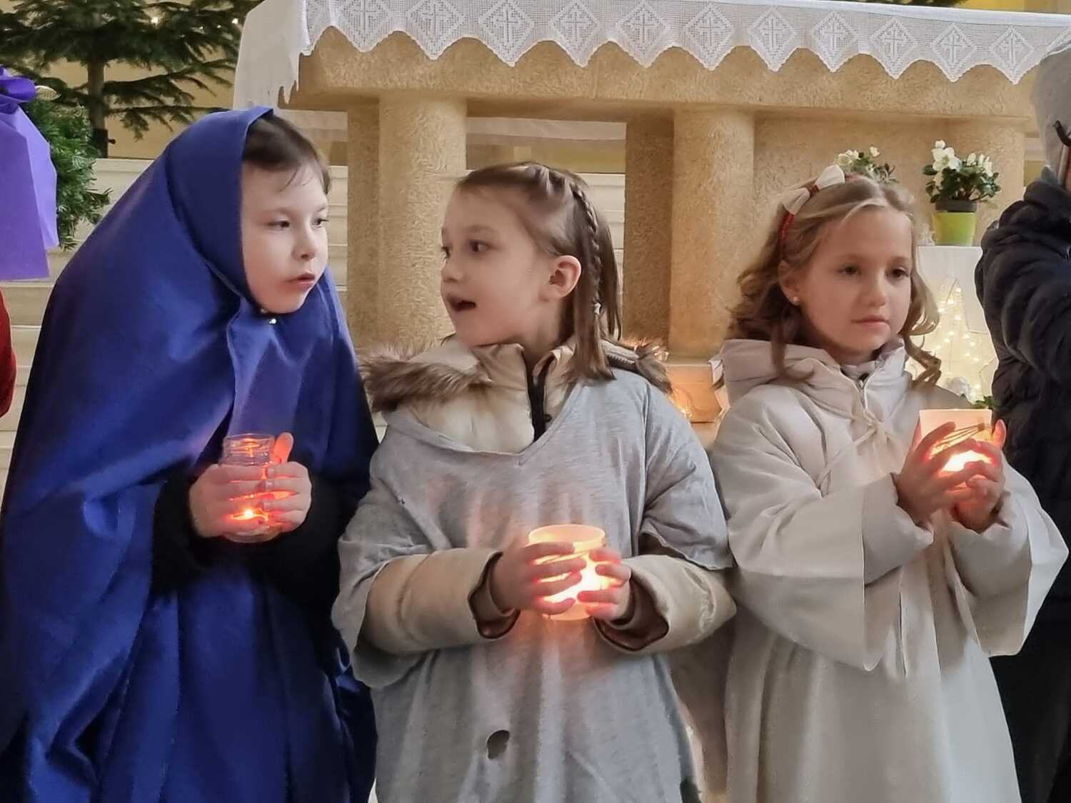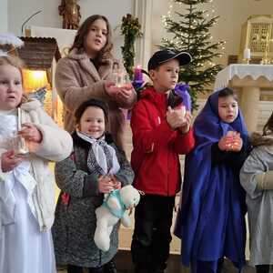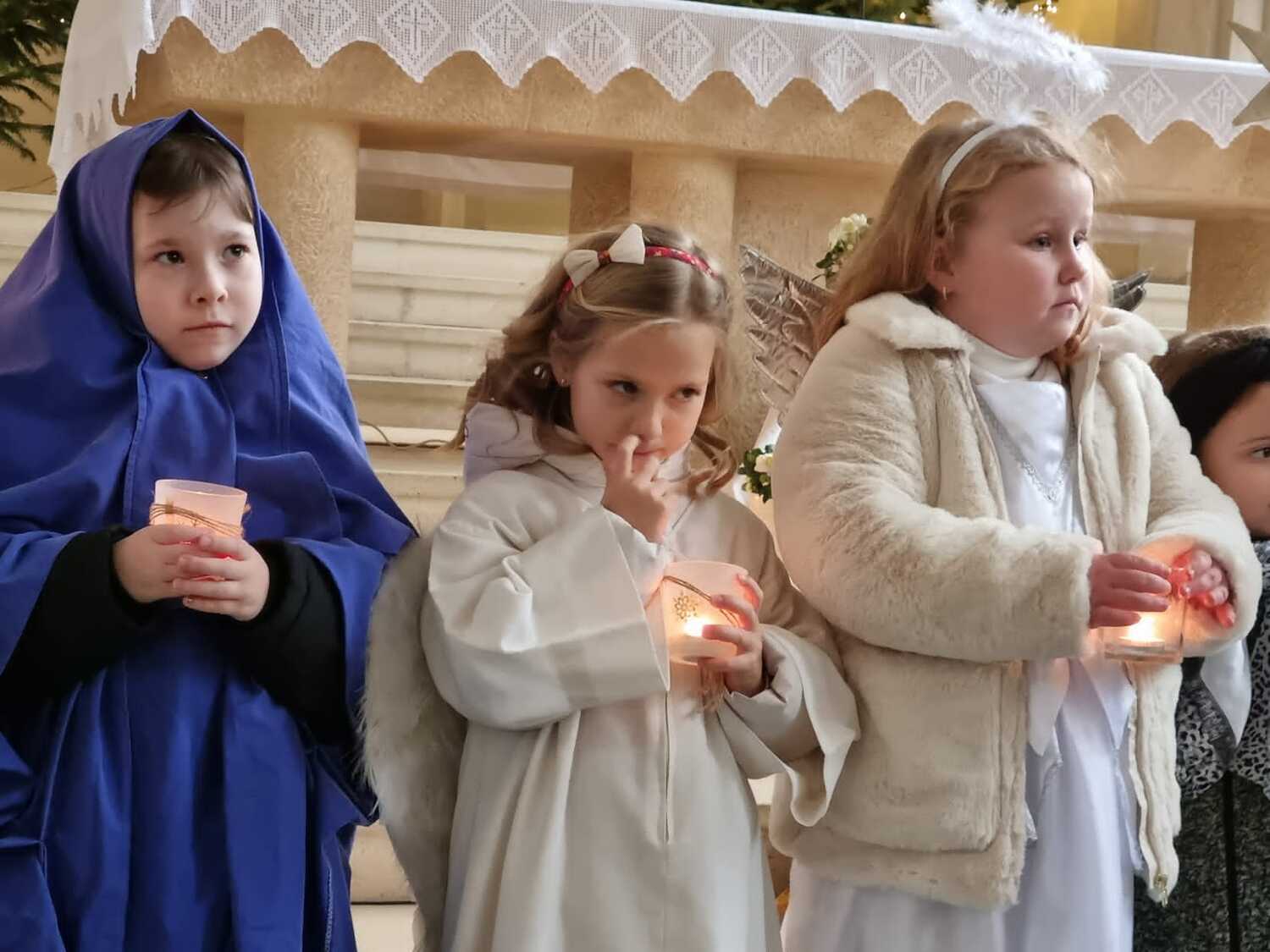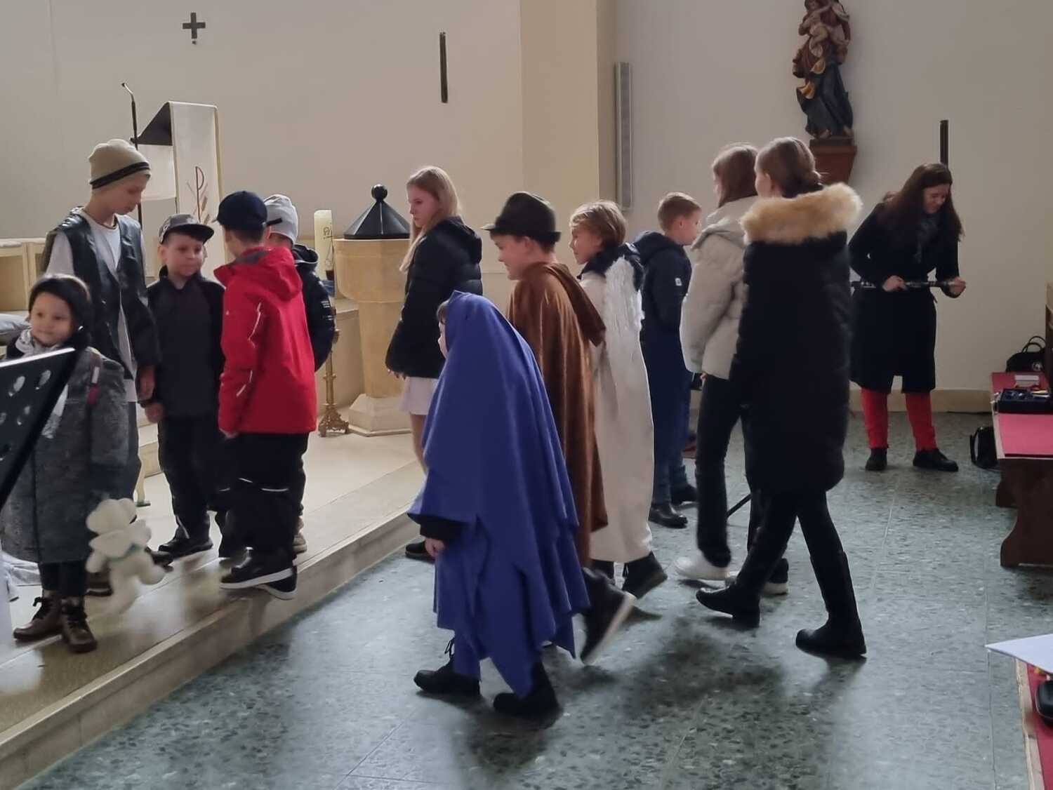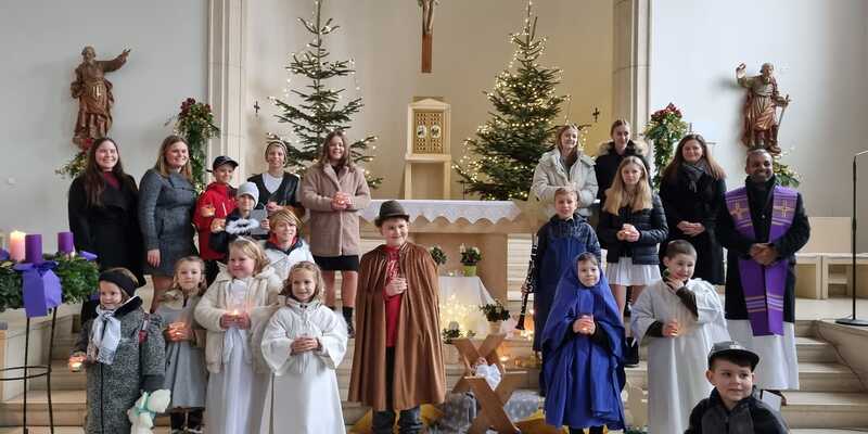Gemeinsam mit Marie Bauer haben sich die Kindergartenkinder, Volksschulkinder, Kommunionkinder, Firmlinge und Ministrantenkinder Gedanken über Weihnachten gemacht und mit einem Krippenspiel, welches von den ursprünglichen Ereignissen vor über 2000 Jahren in die heutige Zeit reicht.