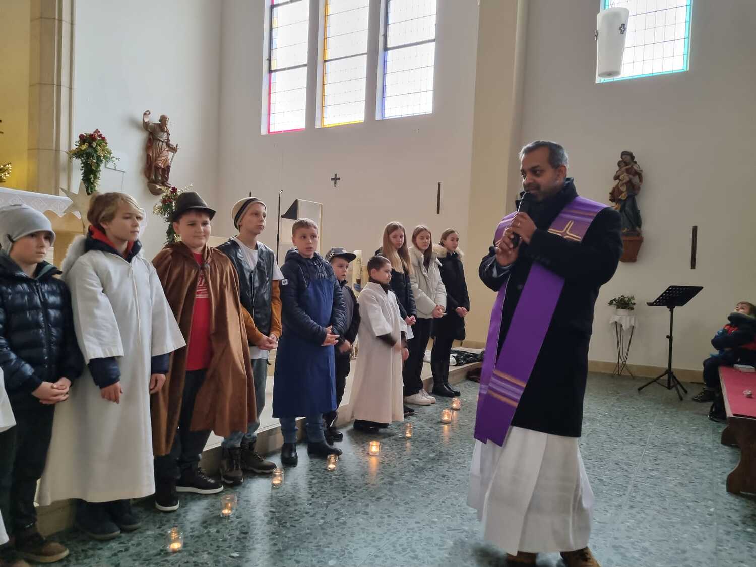 Bevor in den Familien von Lackenbach die Bescherung zelebriert wurde, luden die Kinder der Pfarrgemeinde Lackenbach rund um Pfarrer Shinto zur Krippenandacht ein.