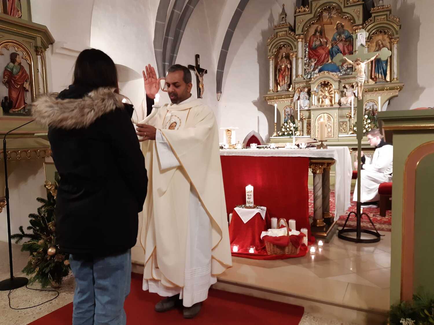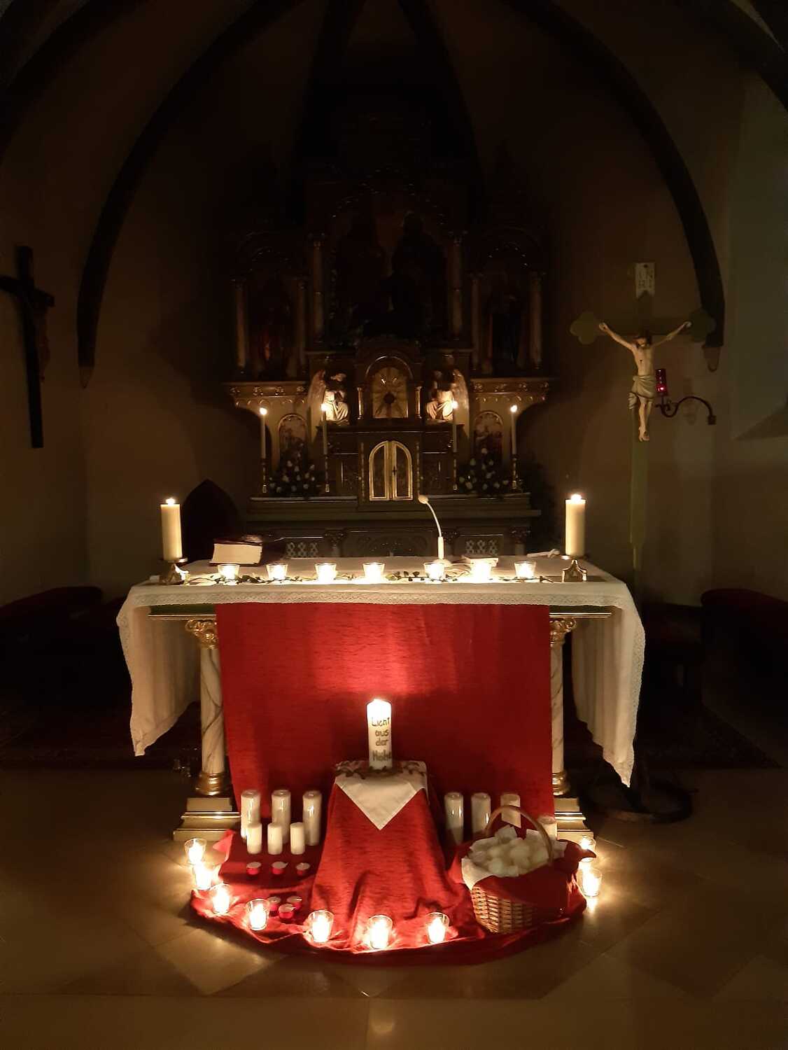An diesem Abend wird auch mit zur Kreuzform gebundenen Kerzen der "Blasiussegen" erteilt. Der Heilige, dessen Namenstag am 3. Feber gefeiert wird, war ein frühchristlicher Märtyrer und wird als Schutzpatron bei Halskrankheiten verehrt.