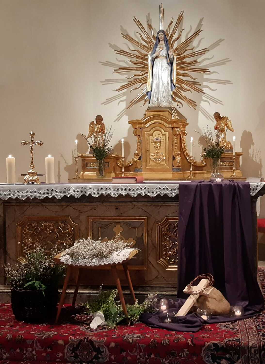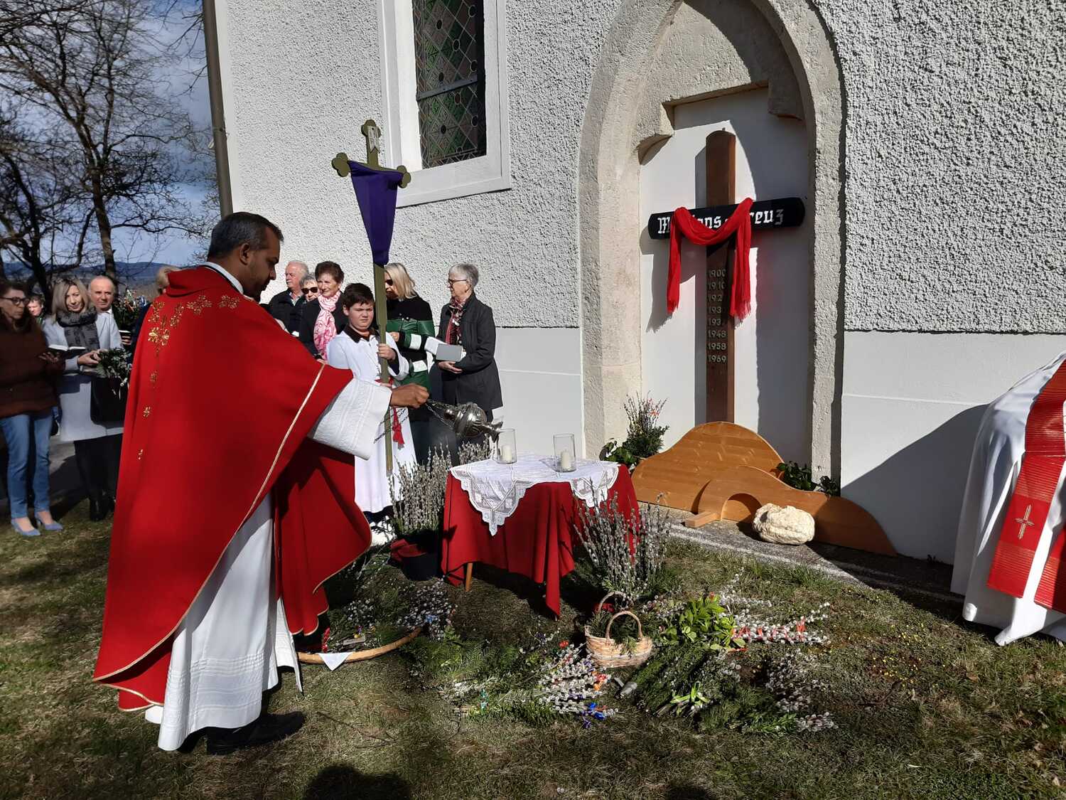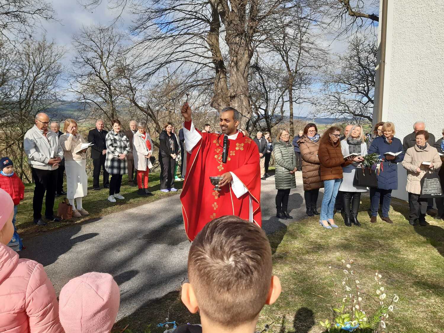 Zur Feier der Liturgie zum Palmsonntag mit Segnung der Palmbuschen trafen sich die Gläubigen der Pfarre Weppersdorf vor der Kirche und zogen in einer kurzen Prozession gemeinsam in die Kirche ein, wo dann ein wunderschön gestalteter Gottesdienst gefeiert wurde.