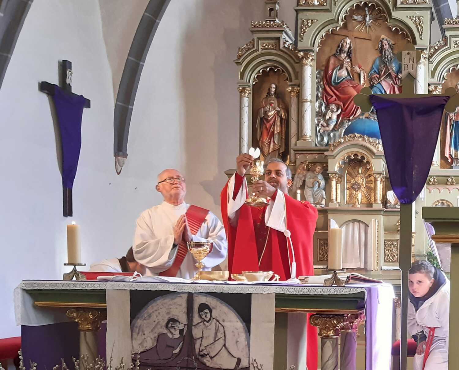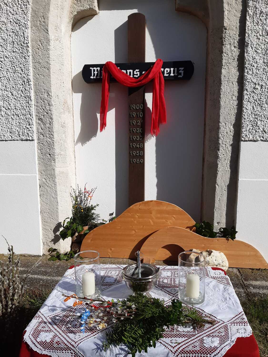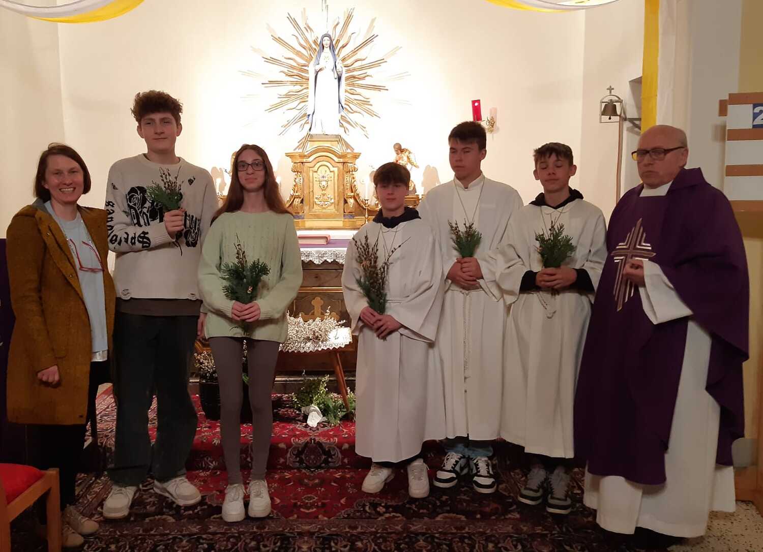 Zur Feier der Liturgie zum Palmsonntag mit Segnung der Palmbuschen trafen sich die Gläubigen der Pfarre Weppersdorf vor der Kirche und zogen in einer kurzen Prozession gemeinsam in die Kirche ein, wo dann ein wunderschön gestalteter Gottesdienst gefeiert wurde.