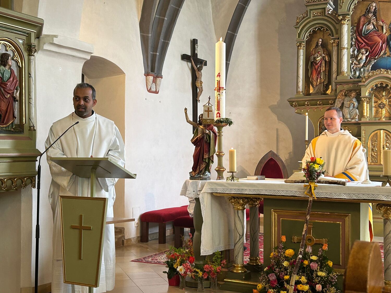 Die spirituelle Wanderung endete erstmal im Pfarrheim Weppersdorf, wo wir mit einem großzügigen Frühstück versorgt wurden. Gestärkt zogen wir alle gemeinsam in die Pfarrkirche Weppersdorf ein, wo Gastpfarrer David Gold und Pfarrer Shinto einen wunderschönen Gottesdienst mit uns feierten.