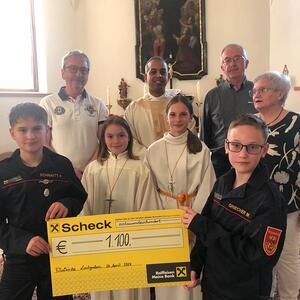 Der Reinerlös der Veranstaltung von € 1,100,- wurde am Samstag im Rahmen der Florianimesse an Pfarrer Shinto übergeben und wird für Projekte mit Kindern in der Heimat unseres Pfarrers verwendet.
