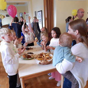 Aufgrund des unbeständigen Wetters an diesem Tag musste das geplante Programm kurzerhand etwas abgeändert werden. Der gemeinsame Marsch zur Segensstation bei der Sonnenuhr am Radweg entfiel und wurde in die alte Schule verlegt. Dort konnten die Kinder Segenswünsche fischen und gemeinsam jausnen. Für die Erwachsenen waren ebenfalls Segenswünsche in Form von Kärtchen oder auch digital vorbereitet.