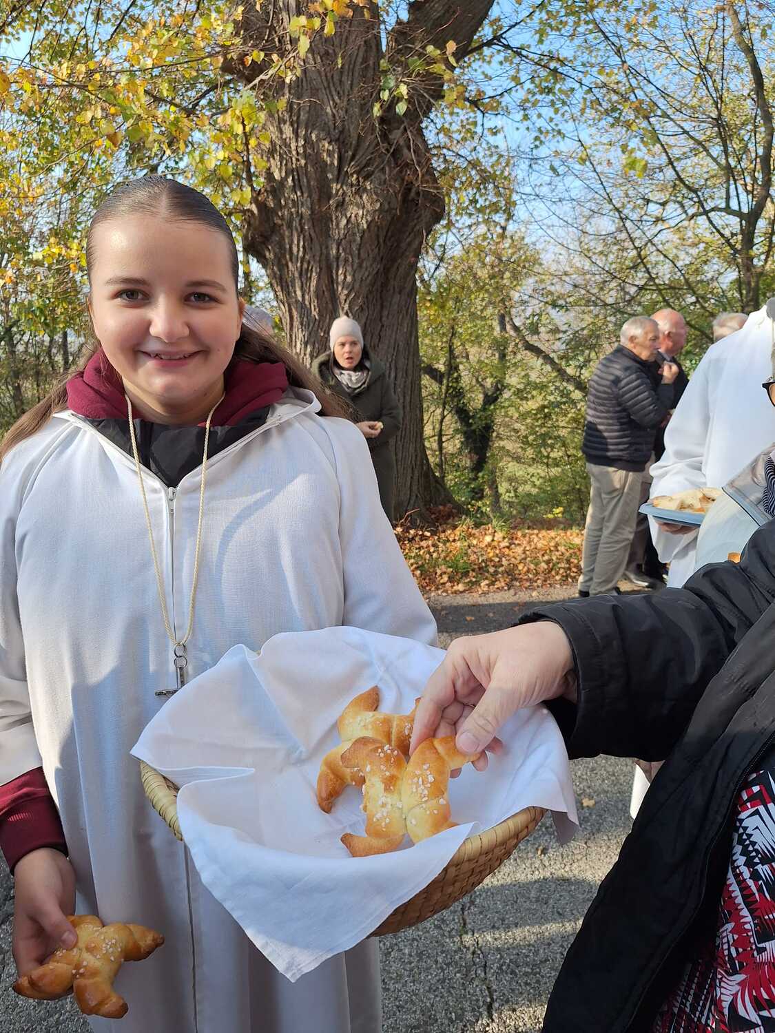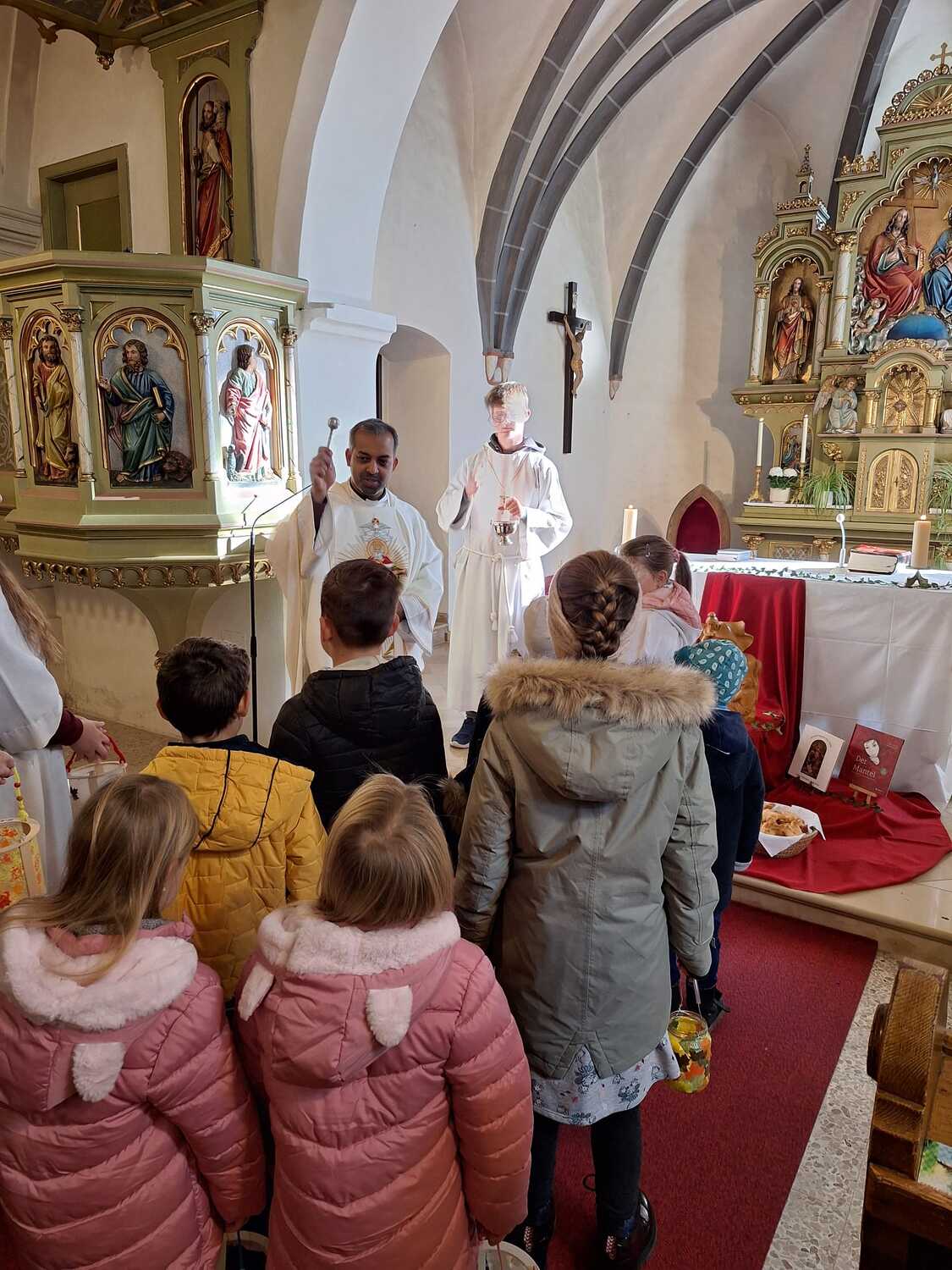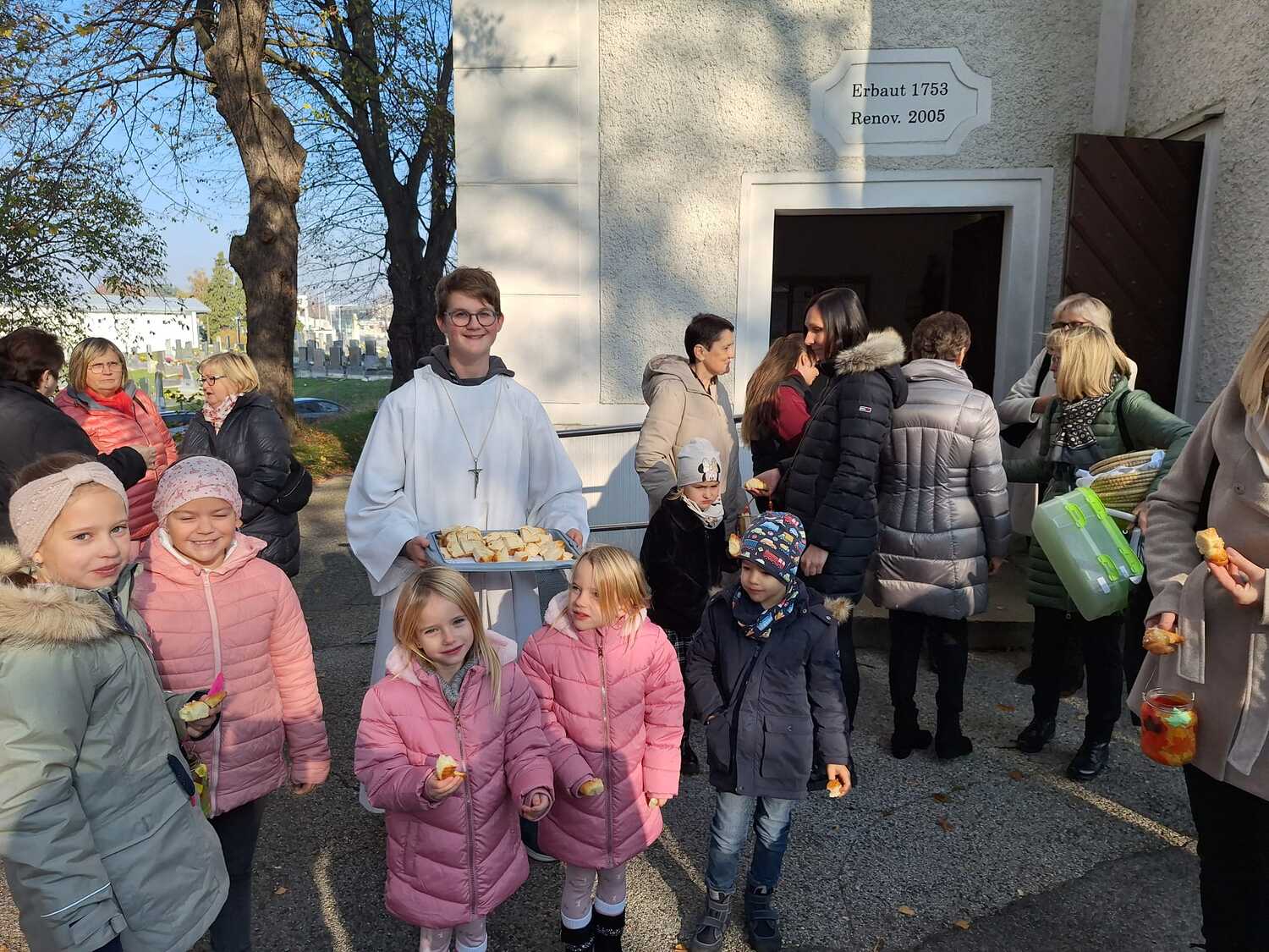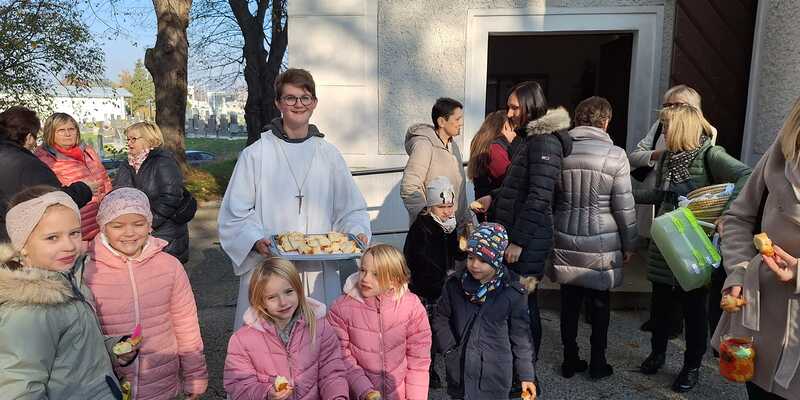 Am Ende des Gottesdienstes schlüpften die Kinder in die Rolle des hl. Martin und verteilten voller Freude die von tüchtigen Damen gebackenen Martins-Kipferl.