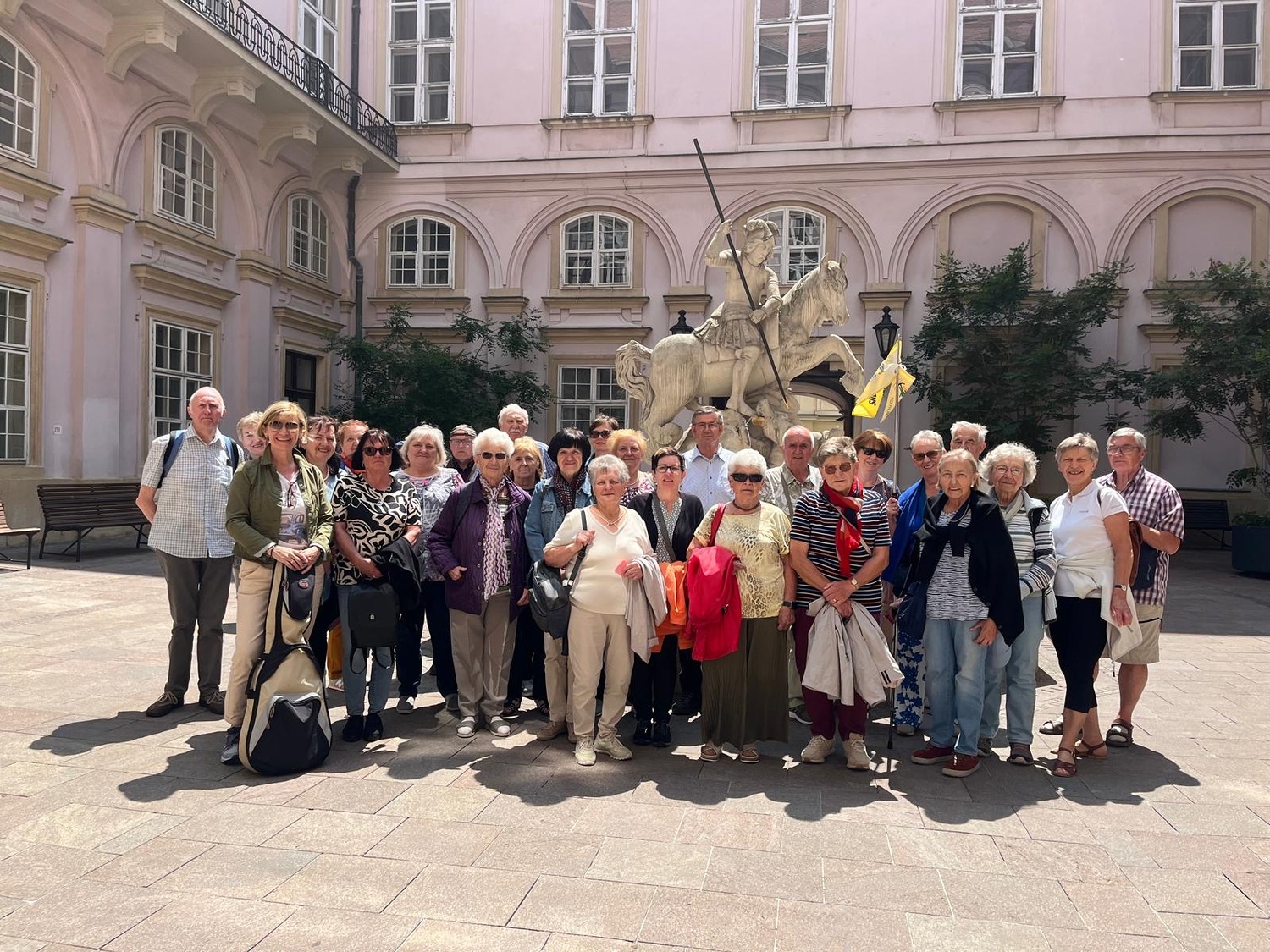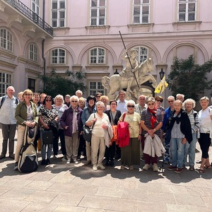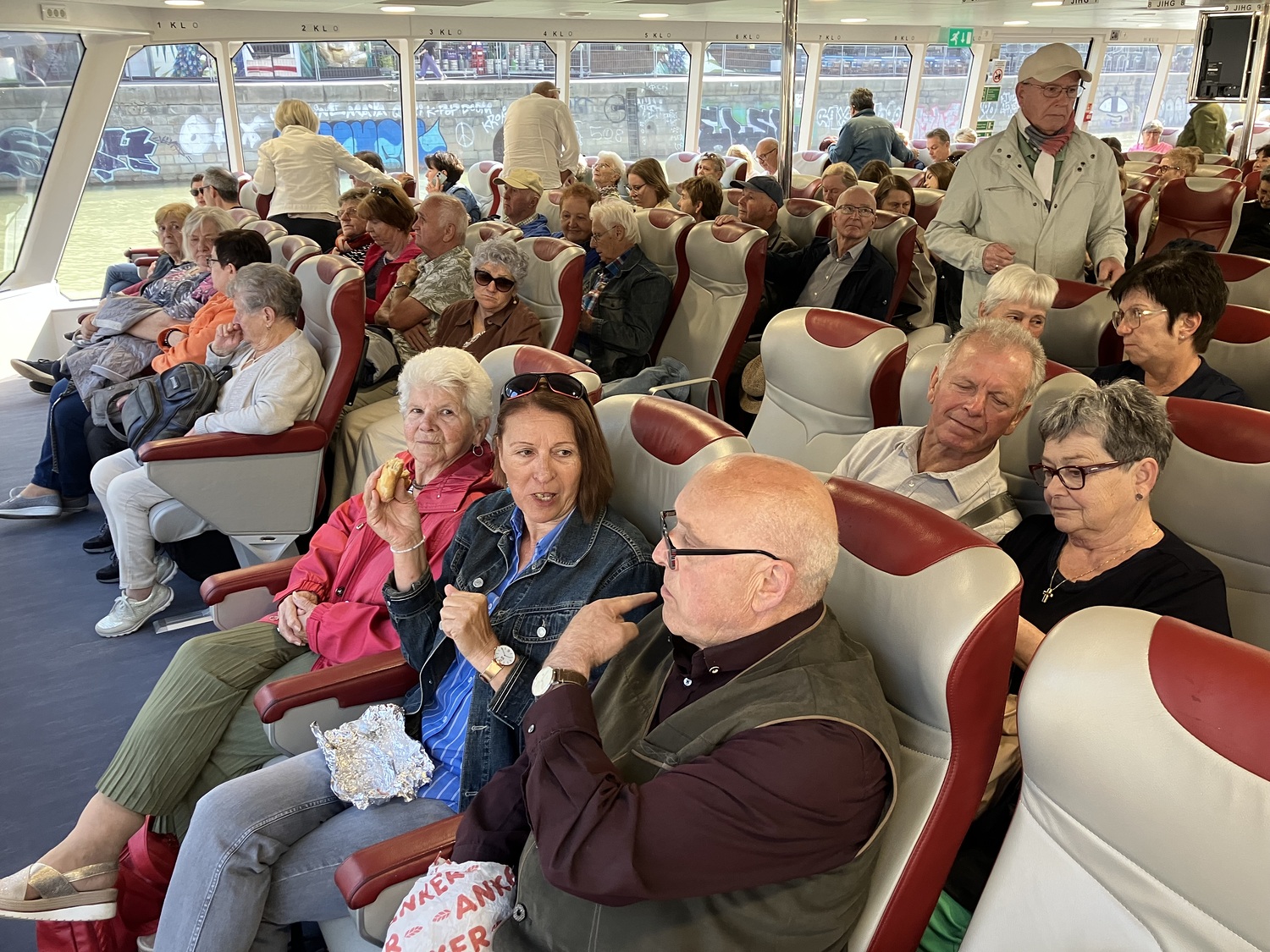 Am Dienstag, dem 10. Juni 2025, veranstaltete der Pfarrverband Kobersdorf-Weppersdorf-Lackenbach – unter der Leitung von Dechant Mag. Shinto Varghese Michael – einen Pfarrausflug nach Bratislava. Mit dabei war auch Altpfarrer Mag. Karl Heinz Mück. Zeitig in der Früh wurden die Reiseteilnehmer mit dem Bus von den einzelnen Gemeinden des Pfarrverbandes abgeholt. Danach ging es zum Schwedenplatz nach Wien, wo sich die 80 Frauen und Männeran Bord desTwin City Liners begaben. Auf dem Donaukanal fuhr das Schiff in die Donau; die Fahrt nach Bratislava dauerte nicht ganz 1 ½ Stunden. Bei der Anlegestelle in der slowakischen Hauptstadt wurden die Mitreisenden von den örtlichen Reiseleitern in Empfang genommen.