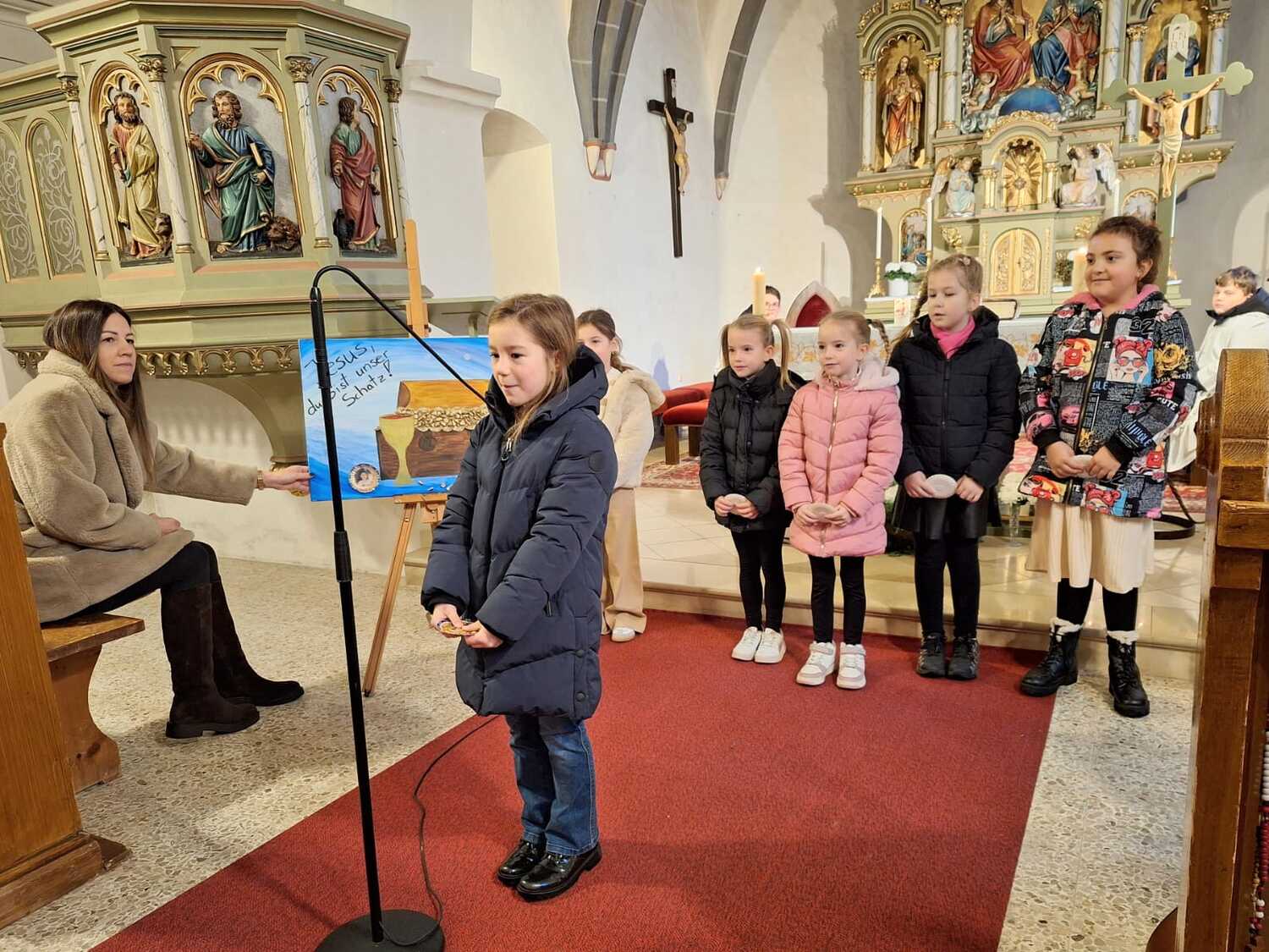 Am 23. November durften wir in unserer Pfarrkirche einen besonders schönen Gottesdienst feiern: die Vorstellung unserer Erstkommunionkinder. Gemeinsam mit ihrer Religionslehrerin hatten die Kinder die Messe mit Texten und Liedern liebevoll mitgestaltet und so zu einem lebendigen und berührenden Gottesdienst beigetragen.