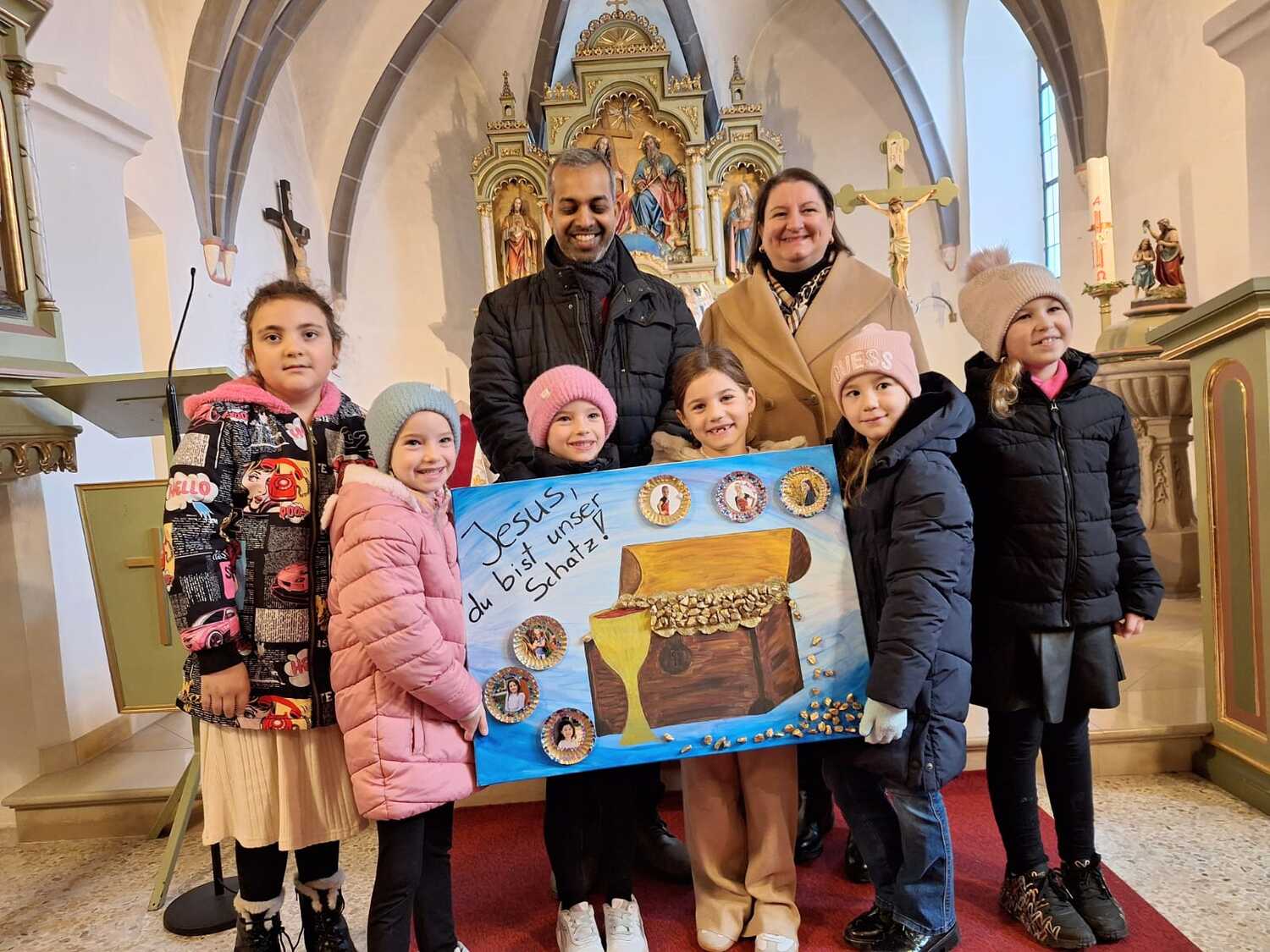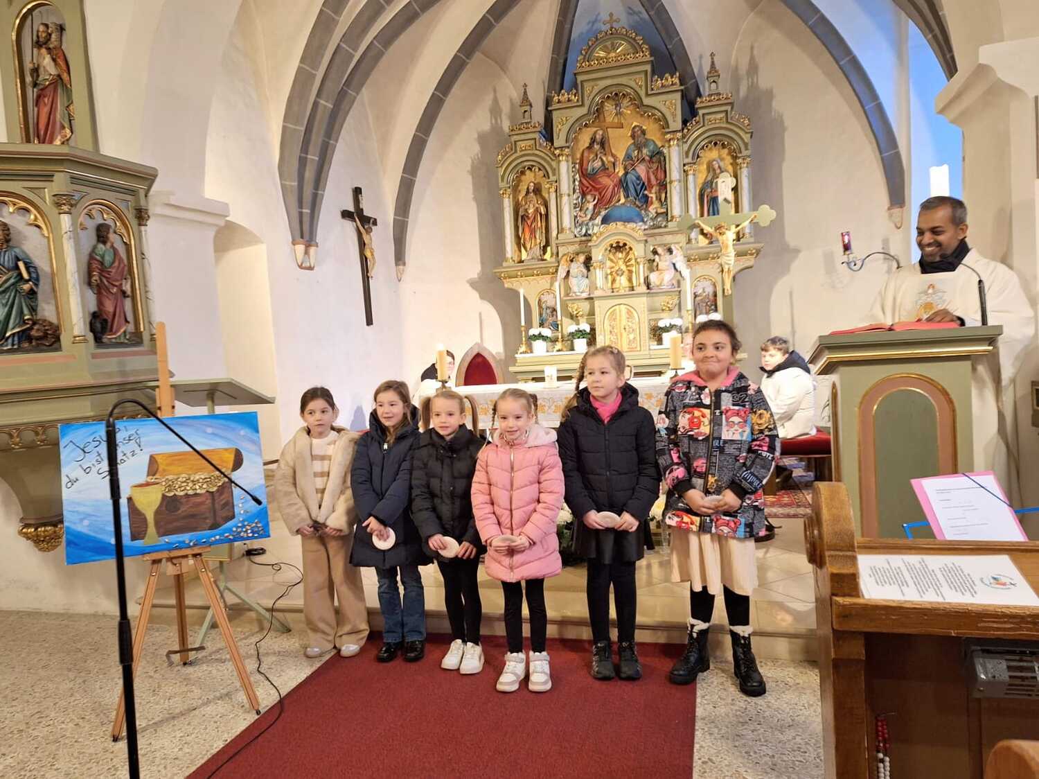 Unter dem Motto „Jesus, du bist mein Schatz“ wurde deutlich, dass der größte Schatz nicht aus Gold oder Edelsteinen besteht, sondern in der Freundschaft und Liebe Jesu zu finden ist. In der Predigt hörten wir davon, dass Jesus ein Schatz ist, der niemals vergeht – und dass er jeden einzelnen von uns als wertvoll und geliebt ansieht.