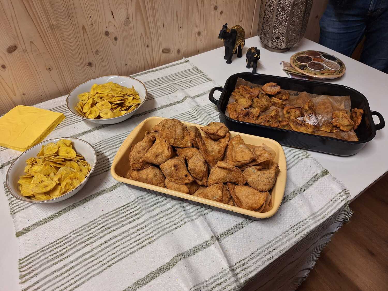 Nach dem Vortrag waren alle Gäste zu einer gemütlichen Agape eingeladen. Dort warteten sowohl indische Köstlichkeiten, wie Samosa und gebackene Bananen, als auch burgenländische Spezialitäten, die den kulturellen Bogen dieses Abends wunderbar abrundeten.