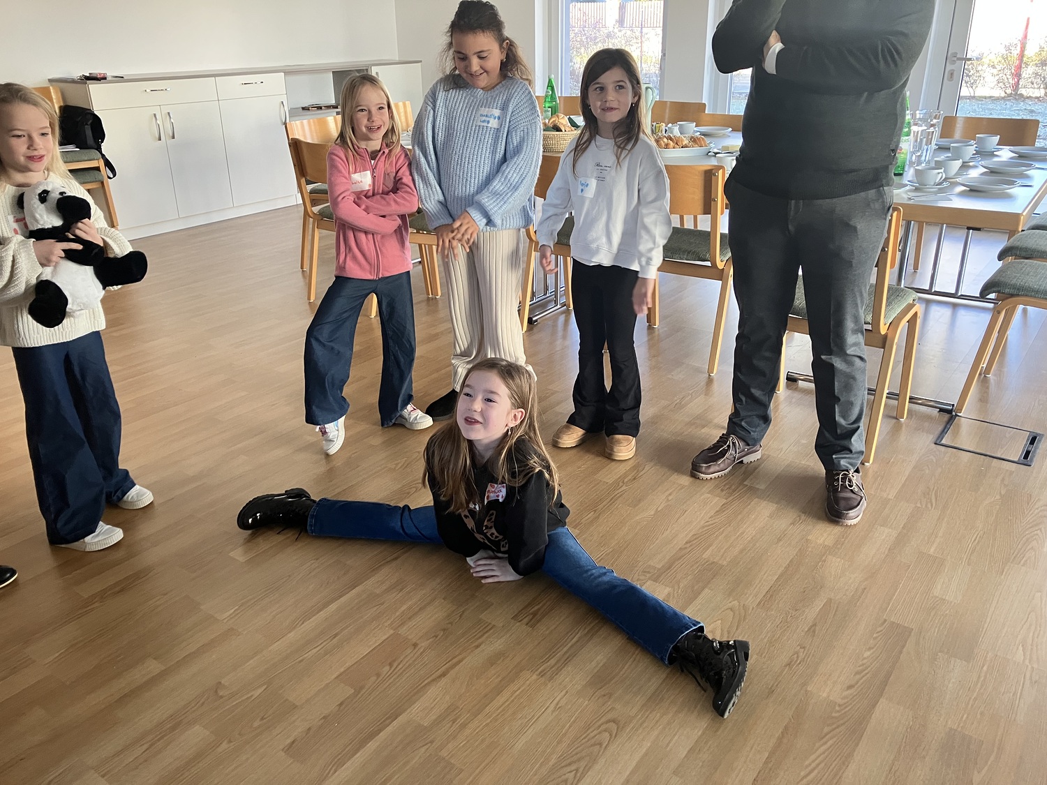 So wurden in verschiedenen Kreisspielen Themen wie gemeinsame Interessen, Hobbys aber auch Teamwork in den Vordergrund gestellt. Eine besondere Herausforderung war der “Eier-Flyer”, bei dem es das Ziel war mit Hilfe von Papier, Schere, Klebeband und Strohhalmen ein rohes Ei so zu präparieren, dass es bei einem Sturz aus ca. 3 Metern Höhe nicht kaputt ging.