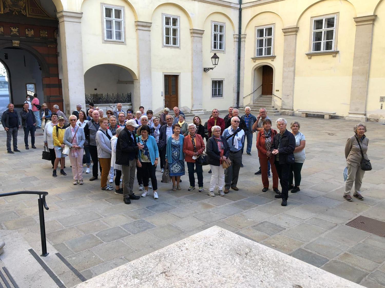 Der erste gemeinsame Ausflug des Pfarrverbandes Hl. Nikolaus führte uns am 11. September 2021 nach Wien. Ein bis auf den letzten Platz gefüllter Autobus brachte uns direkt zur Hofburg, wo zuerst einmal in der dortigen Kapelle der Tag mit einer Hl. Messe mit Pfarrer Shinto begonnen hat. Anschließend genoss die Gruppe eine exzellente Führung durch die Hofburg, bei der die Prunkräume, die Silberkammer und die Schatzkammer besichtigt wurden.
