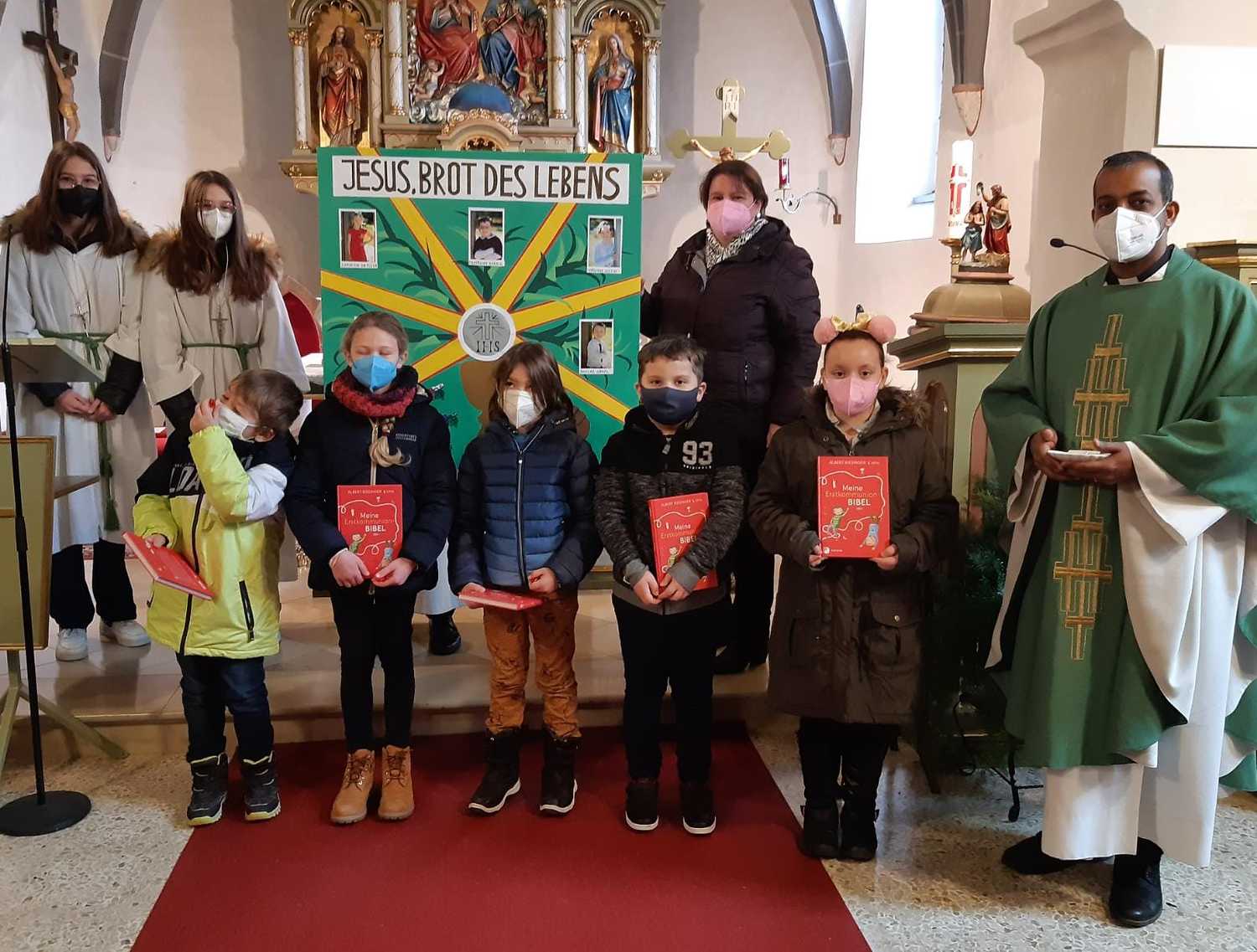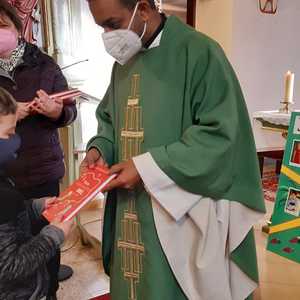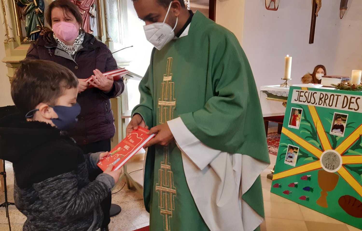 Am Sonntag, dem 30. Jänner wurden sie im Rahmen des Sonntagsgottesdienstes der Pfarre vorgestellt und haben für die gemeinsame Vorbereitung von Pfarrer Shinto eine Kinderbibel erhalten.