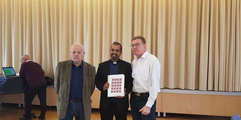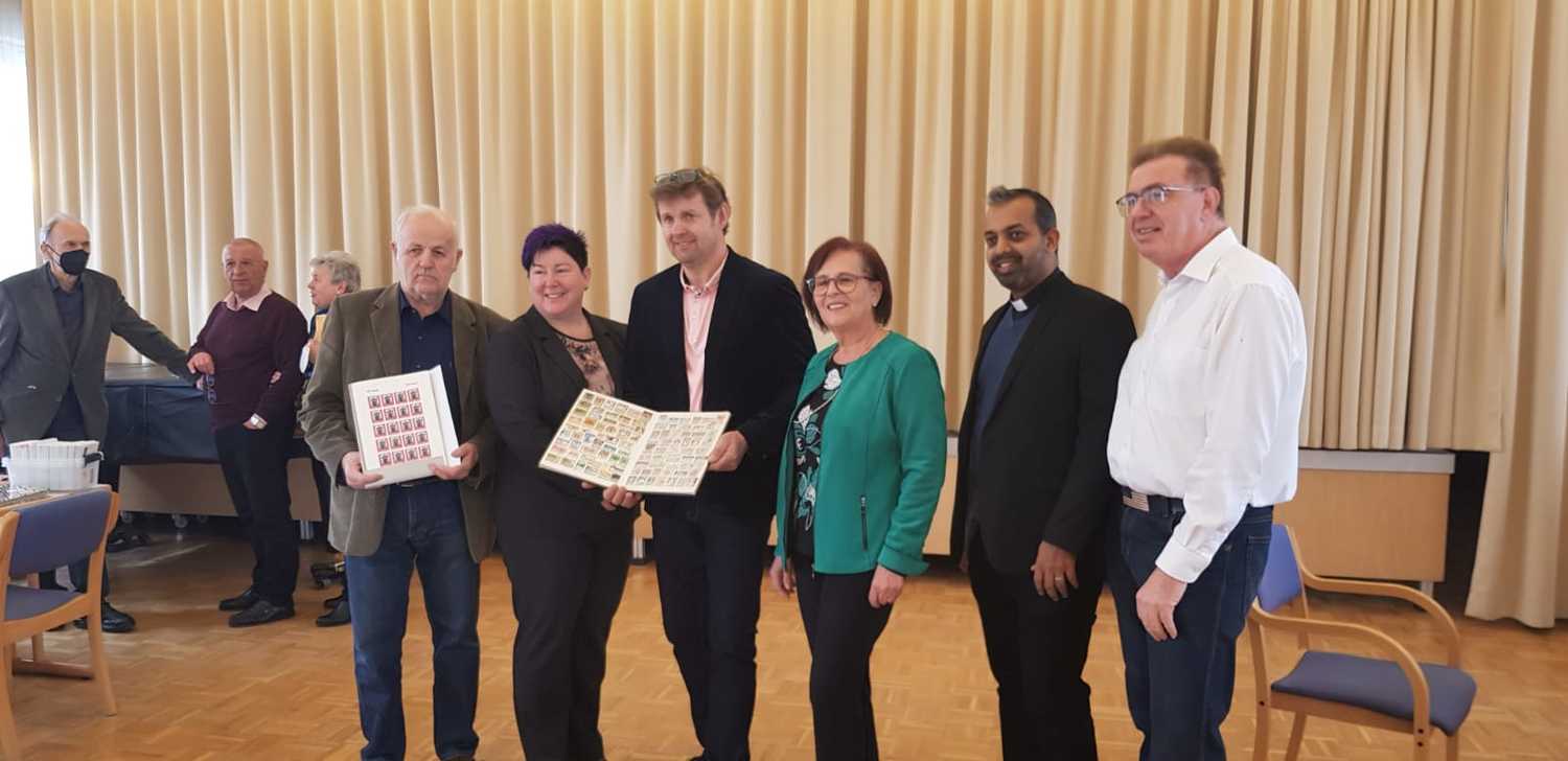 In feierlichem Rahmen wurde die Briefmarke am Samstag, dem 2. April erstmals im Rathaus Oberpullendorf vorgestellt. Eines der ersten Exemplare hat Pfarrer Shinto erhalten, der bei der Präsentation anwesend war.