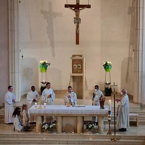 Diesmal durfte ich in meine Pfarre einladen. Treffpunkt war um 16 Uhr bei Kaffee und Kuchen im Pfarrheim Lackenbach. Um 18 Uhr feierten wir dann gemeinsam mit Hauptzelebrant Pfarrer Stefan Jahns eine Heilige Messe in der Pfarrkirche Lackenbach, in der auch um geistliche Berufungen gebetet wurde.