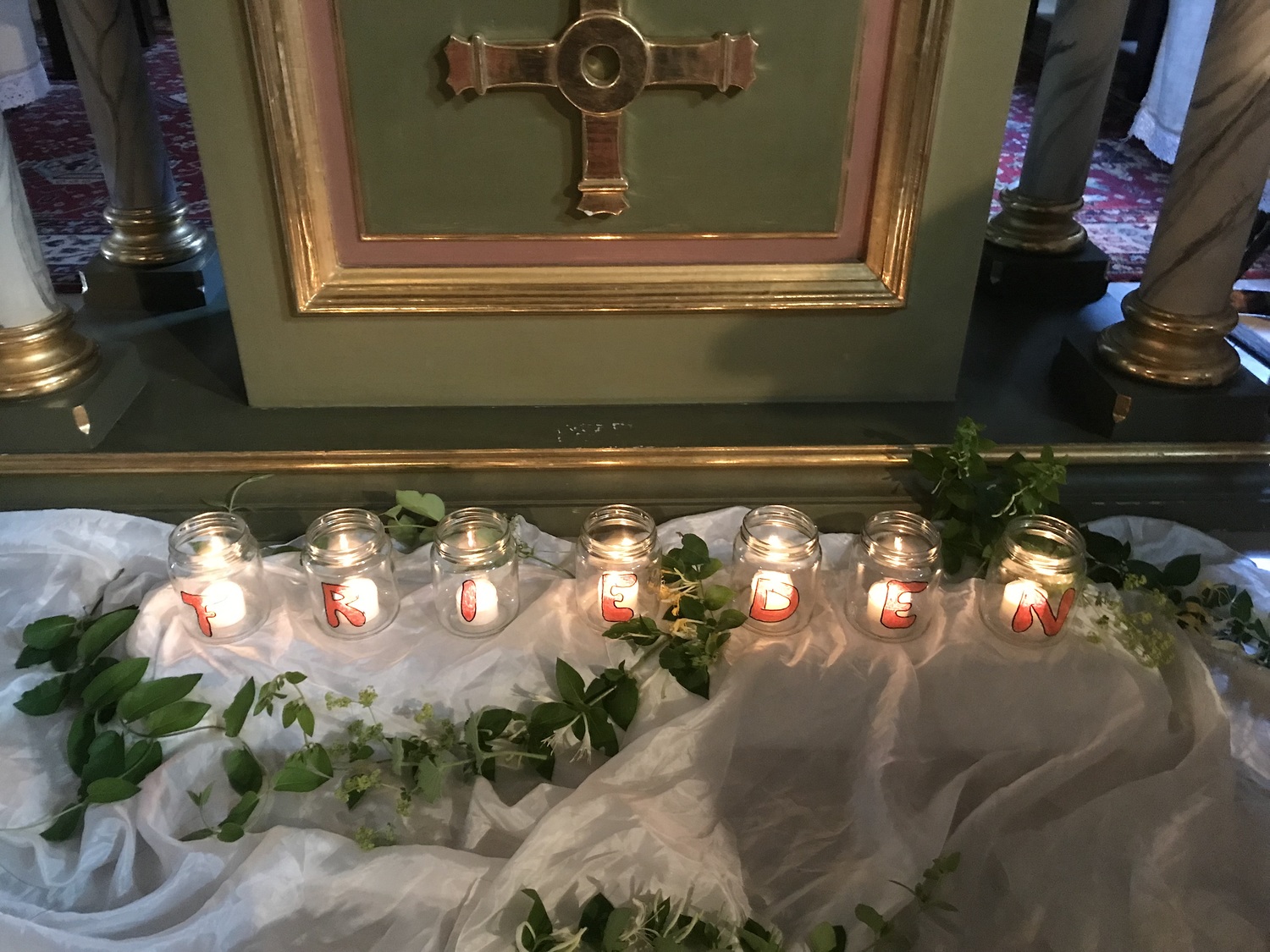 Aus unserem Alltag aussteigen und in einen Raum der Ruhe und Stille begeben, das wollten wir an diesem Abend, als wir uns in die wunderbar geschmückte Kirche begaben. Im persönlichen Gebet, in Stille, beim Hören von Meditationen und Musik, beim gemeinsamen Gebet einer Friedensandacht und mit dem eucharistischen Segen konnten wir dem Geist der Versöhnung Raum geben und um das Geschenk des Friedens bitten.
