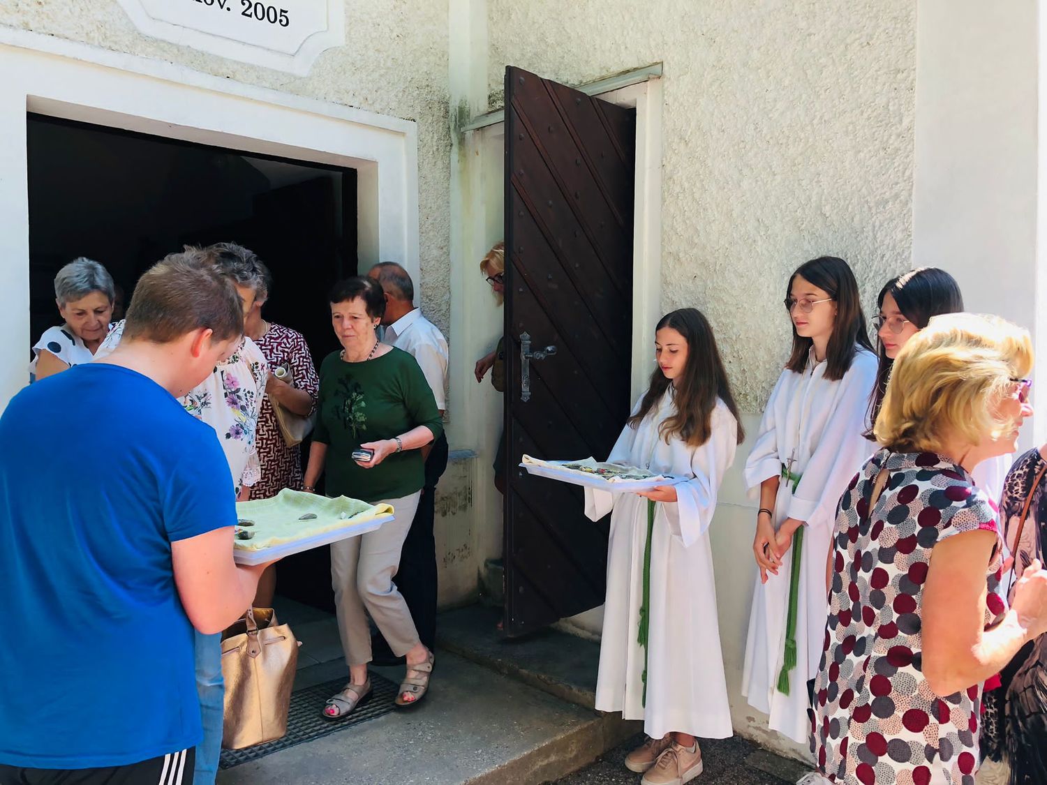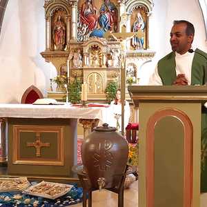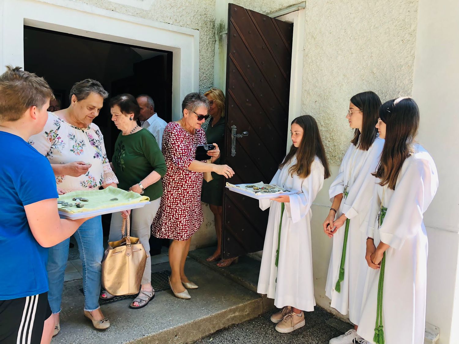In der Kirche ist auch ein leerer Korb zu finden. Die Menschen werden gebeten, von ihrem Urlaub, ihrer Ferienzeit eine kleine Erinnerung mitzubringen – nichts Gekauftes, vlt. eine Muschel vom Strand, ein Blatt von einem Baum, ein Bild, oder sonst ein Gegenstand, wo du Freude verspürst und an deine Pfarrfamilie zu Hause denkst.