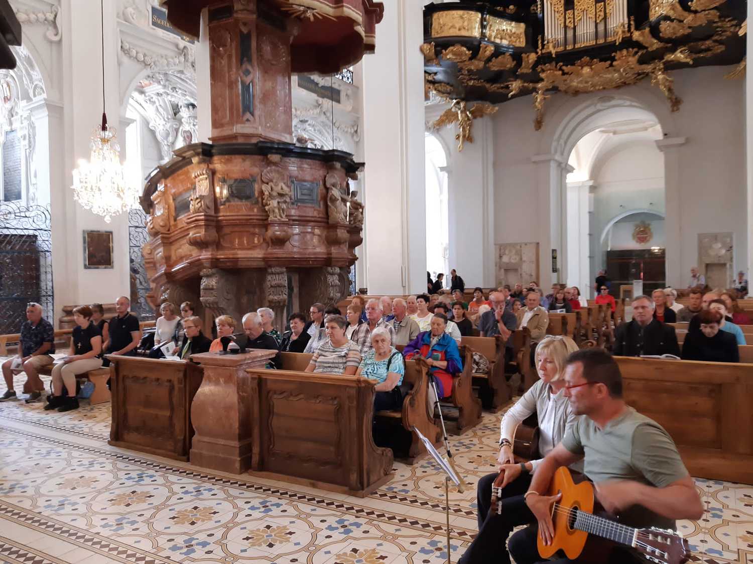 Am Freitag, dem 15. Juli reiste dann eine Gruppe aus dem Pfarrverband mit dem Bus nach, um an der gemeinsamen Messfeier mit den Fußwallfahrern teilzunehmen. Die ruhige, angenehme Fahrt stimmte auf die Hl. Messe in der Basilika, die von Pfarrer Shinto zelebriert wurde, ein.