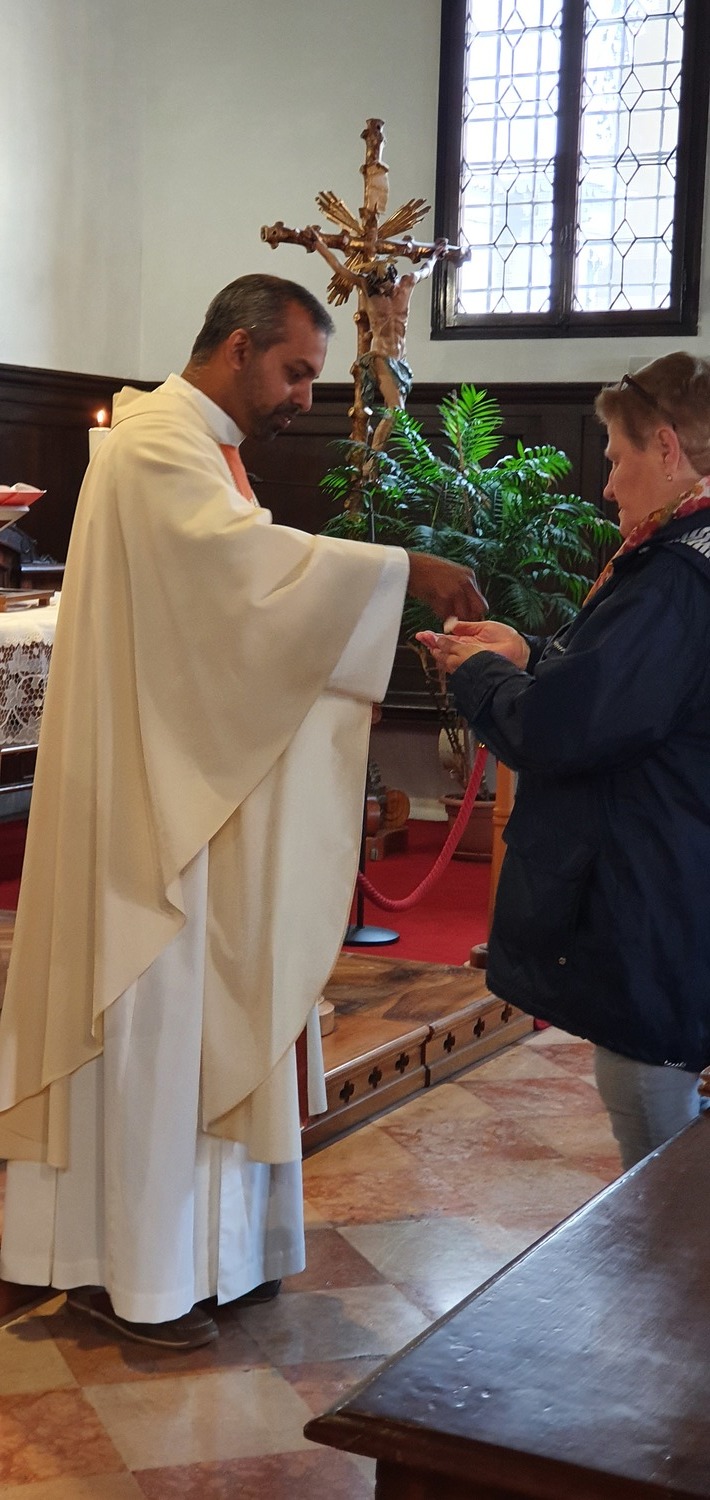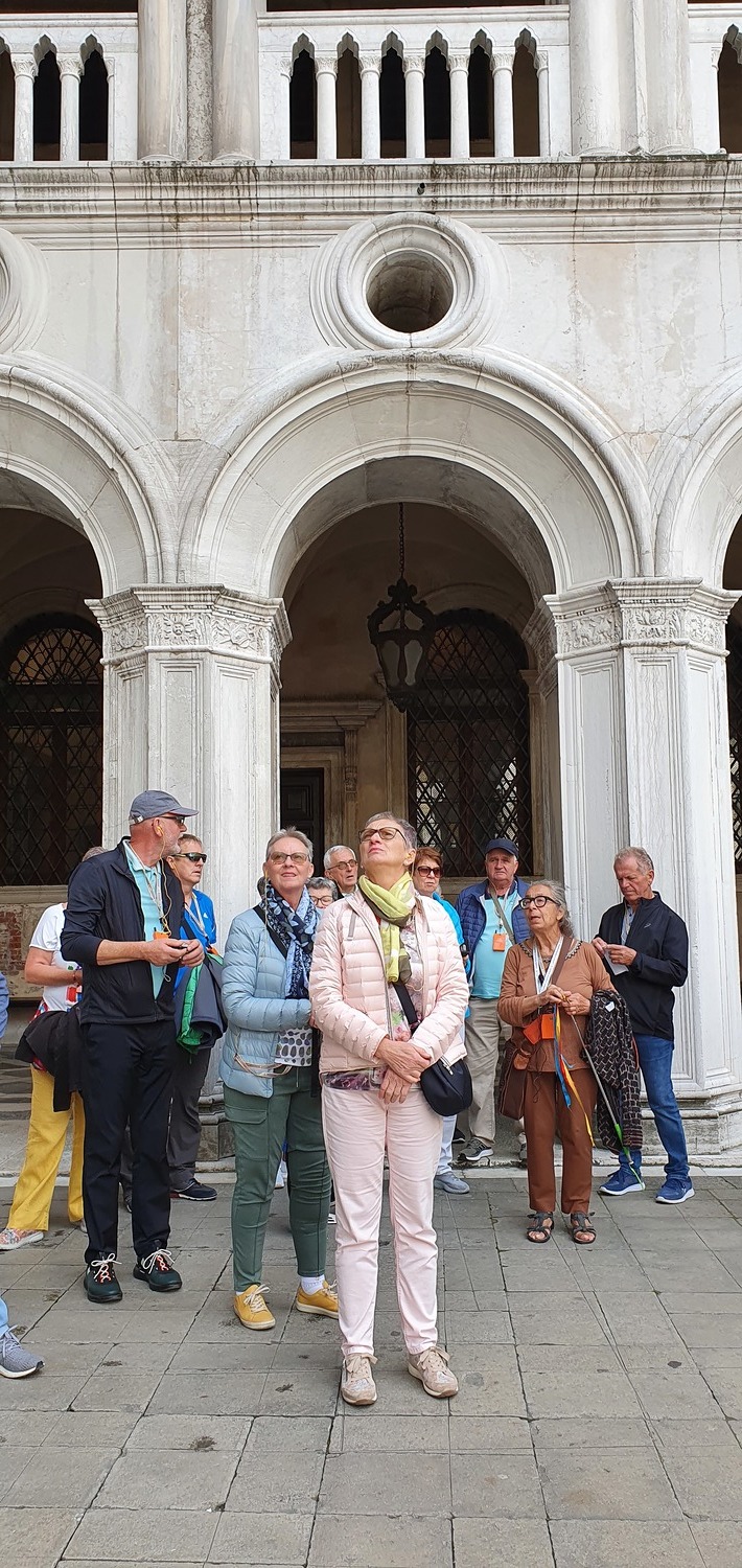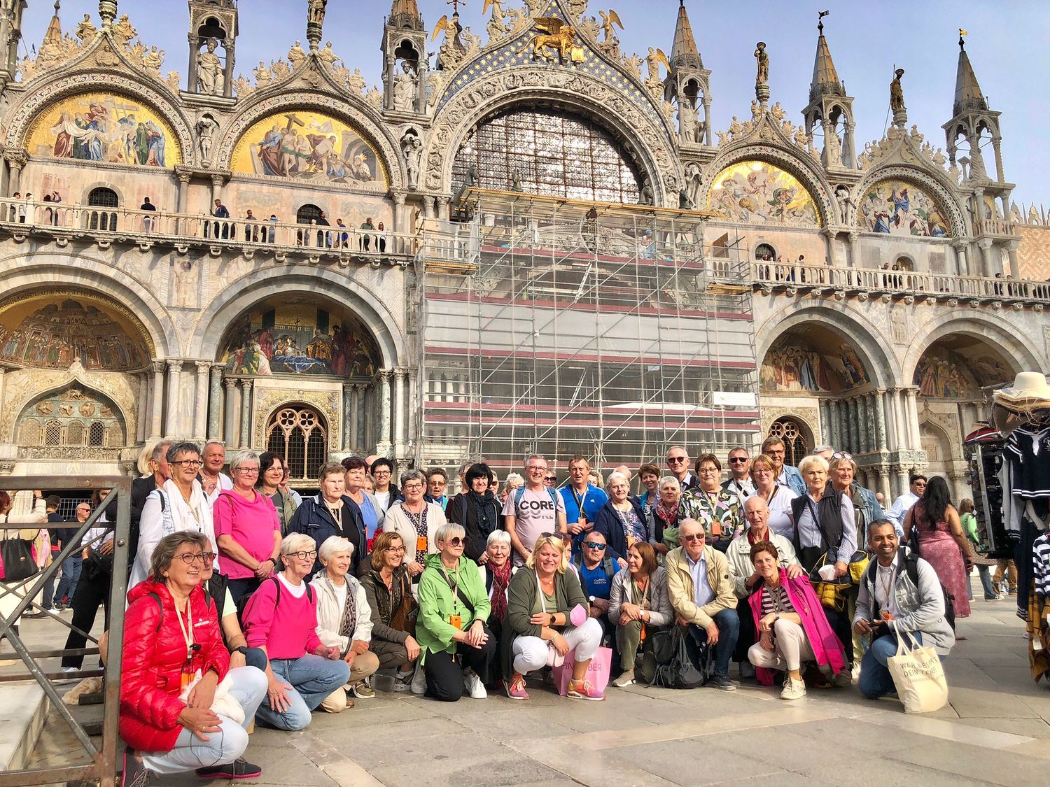 Auf dem Programm standen Triest, Venedig, Padua und Verona. In Venedig zelebrierte Pfarrer Shinto nach einer ausführlichen Führung durch den Dogenpalast einen Gottesdienst in der Krypta des Markusdomes. Danach konnten die weiteren Sehenswürdigkeiten von Venedig bewundert werden. In Padua wurde die Basilika des Heiligen Antonius mit seinem Grabmahl besucht, wo der Herr Pfarrer mit den 55 Reiseteilnehmern ebenfalls eine Hl. Messe feierte. Besichtigt wurde in Padua auch die große Kirche Santa Giustina, in der sich das Grabmahl des Evangelisten Lukas befindet. In Verona standen auf dem Besichtigungsprogramm u. a. der Dom, die Scaliger-Grabmäler, das Haus der Julia mit dem berühmten Balkon und die Arena di Verona. Am 6. Oktober unternahm Pfarrer Shinto mit seinen Gläubigen einen Bootsausflug zu den Laguneninseln Murano (bekannt wegen der Glaskunst), Burano (Spitzenherstellung) und Torcello. In Torcello wurden die Basilika Santa Maria Assunta und die angrenzende Kirche Santa Fosca besichtigt, wo Pfarrer Shinto auch eine Hl. Messe las. Das schöne Wetter machte den ganztägigen Bootsausflug in der Lagune von Venedig für die Frauen und Männer des Pfarrverbandes zu einem unvergesslichen Erlebnis.