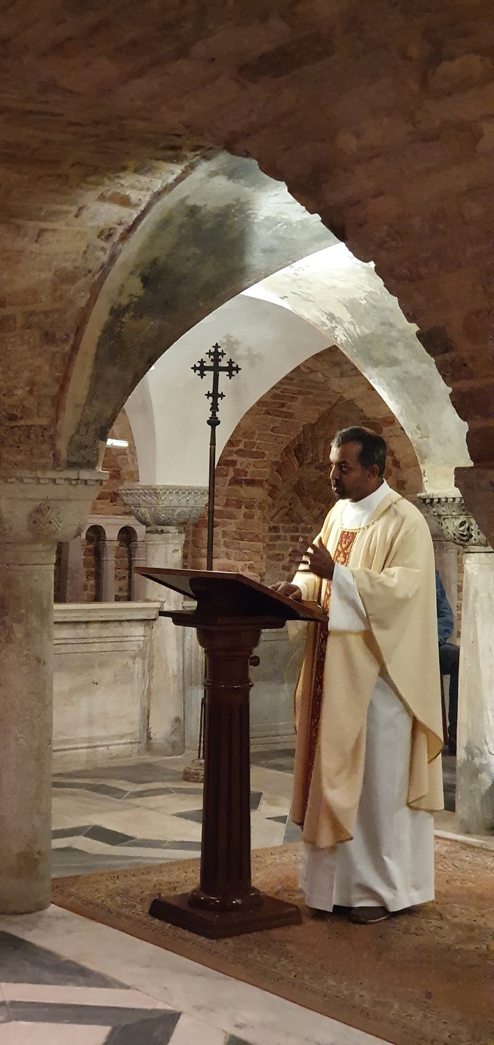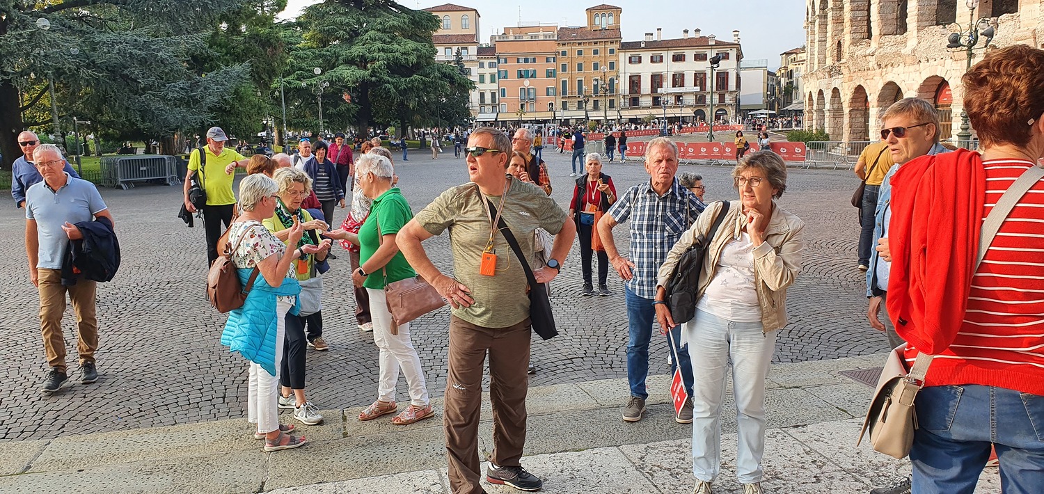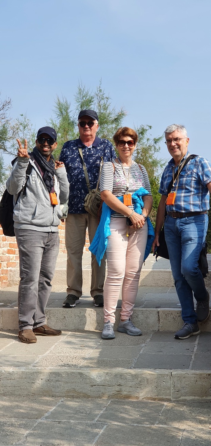 Auf dem Programm standen Triest, Venedig, Padua und Verona. In Venedig zelebrierte Pfarrer Shinto nach einer ausführlichen Führung durch den Dogenpalast einen Gottesdienst in der Krypta des Markusdomes. Danach konnten die weiteren Sehenswürdigkeiten von Venedig bewundert werden. In Padua wurde die Basilika des Heiligen Antonius mit seinem Grabmahl besucht, wo der Herr Pfarrer mit den 55 Reiseteilnehmern ebenfalls eine Hl. Messe feierte. Besichtigt wurde in Padua auch die große Kirche Santa Giustina, in der sich das Grabmahl des Evangelisten Lukas befindet. In Verona standen auf dem Besichtigungsprogramm u. a. der Dom, die Scaliger-Grabmäler, das Haus der Julia mit dem berühmten Balkon und die Arena di Verona. Am 6. Oktober unternahm Pfarrer Shinto mit seinen Gläubigen einen Bootsausflug zu den Laguneninseln Murano (bekannt wegen der Glaskunst), Burano (Spitzenherstellung) und Torcello. In Torcello wurden die Basilika Santa Maria Assunta und die angrenzende Kirche Santa Fosca besichtigt, wo Pfarrer Shinto auch eine Hl. Messe las. Das schöne Wetter machte den ganztägigen Bootsausflug in der Lagune von Venedig für die Frauen und Männer des Pfarrverbandes zu einem unvergesslichen Erlebnis.