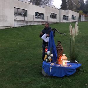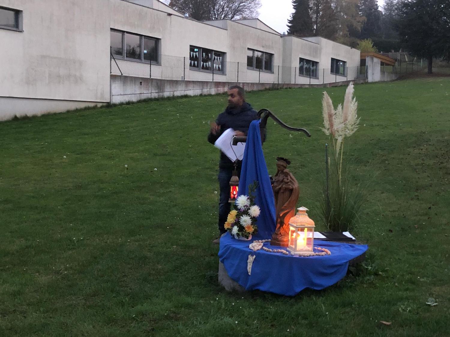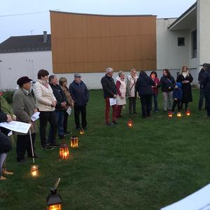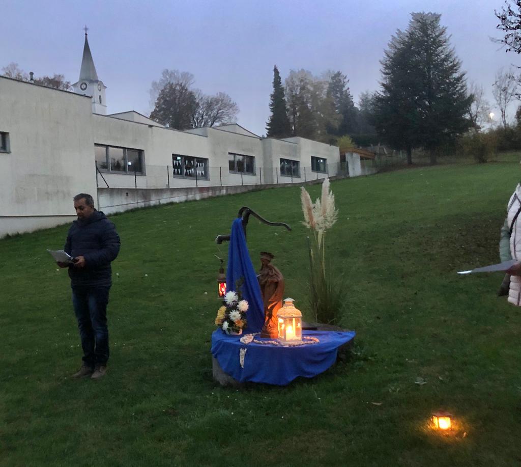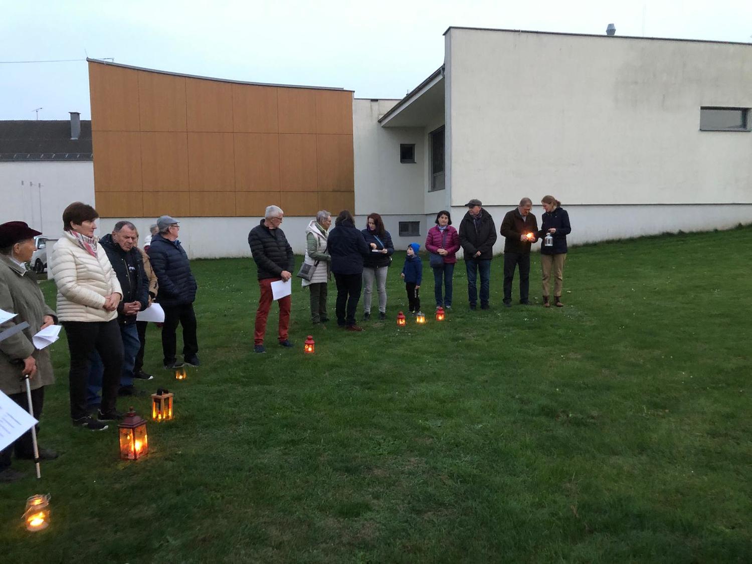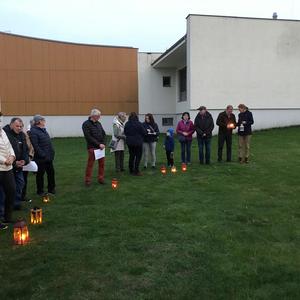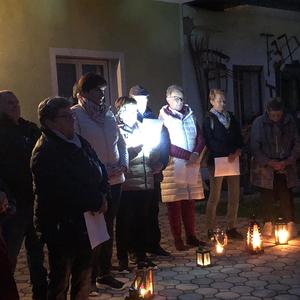 Am Sonntag, dem 30. Oktober fand eine Rosenkranzandacht mit Lichterprozession statt. Treffpunkt zur 1. Station war der Pfarrhofgarten Kobersdorf, wo wir eingeladen waren, unsere Lebensgeschichten mit den Bibelgeschichten zu verknüpfen; unsere Glaubenserfahrungen in „Räume“ zu tauchen, die die Gebete des Rosenkranzes eröffnen.