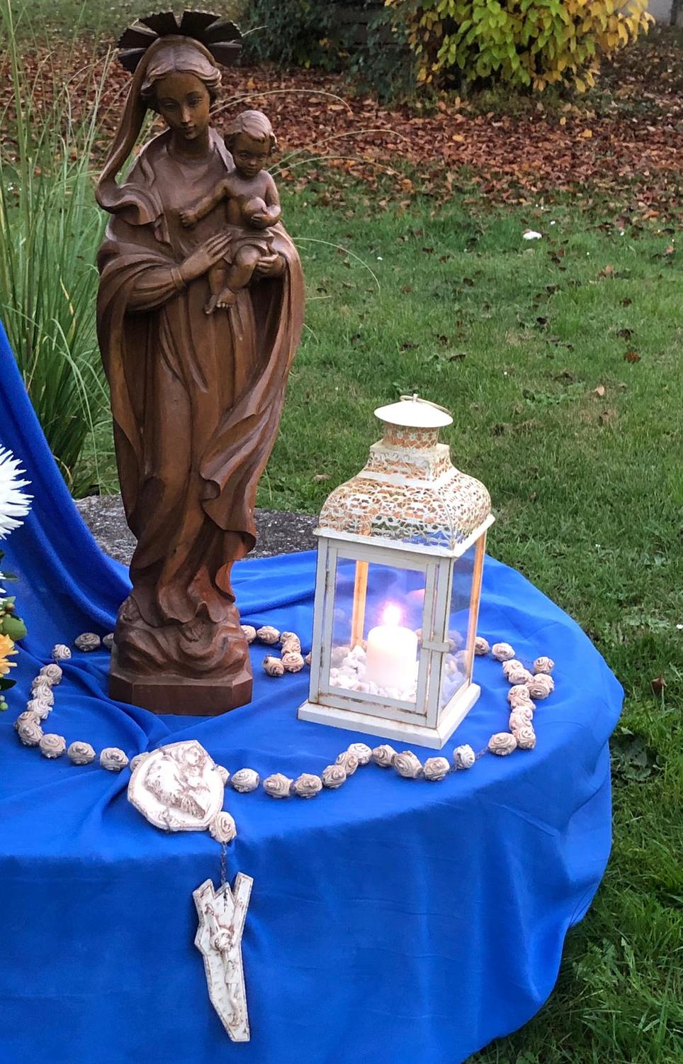 Bei der 3. Station – vor der Marienstatue beim Pfarrhof - wurden alle unsere Erfahrungen, die im Schatten und im Licht unserer Wege stehen, in unsere Gebete aufgenommen.