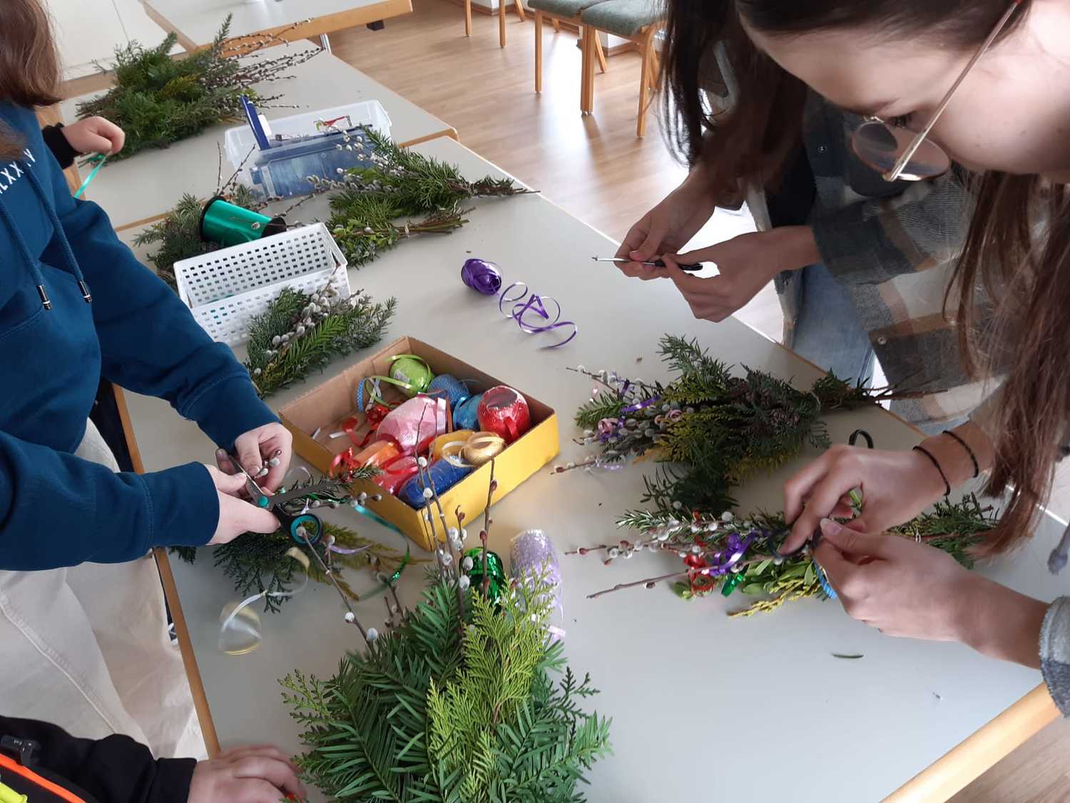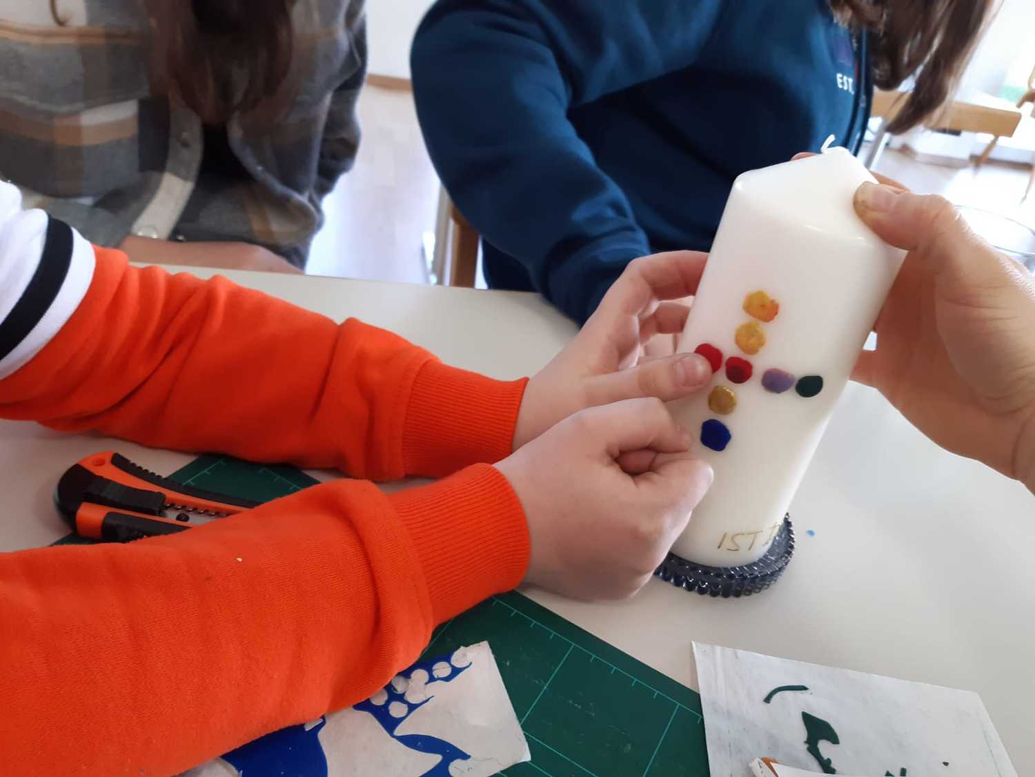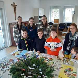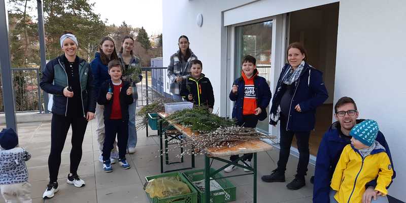 Damit auch wir unsere Freude zeigen können und so wie die Menschen damals Jesus begrüßen können, haben die Kinder unter Anleitung von Jungscharleiterin Katja und Tischmutter Carina wunderschöne Palmbuschen mit den Kindern gebunden. Gemeinsam wurde auch eine Kerze für den Pfarrhof gebastelt und die Fenster des Pfarrhofes wurden mit Bildern und Texten der Karwoche geschmückt.