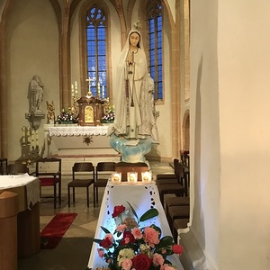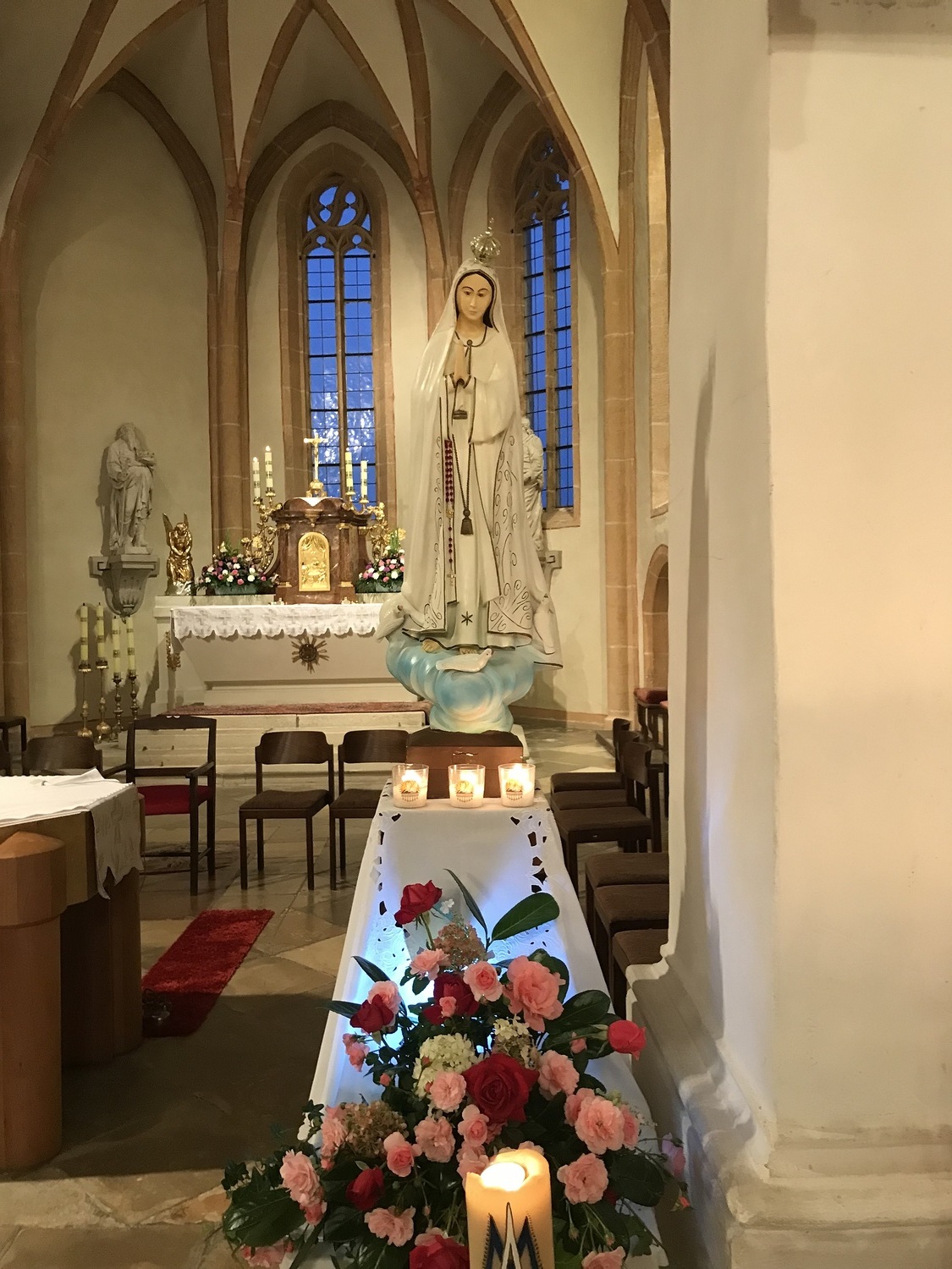 In Unterfrauenhaid angekommen, nahmen wir an der monatlichen Fatimafeier teil, in der diesmal auch unser Dechant Janusz Jamróz verabschiedet wurde, der im Anschluß noch zu einer kleinen Agape eingeladen hatte.