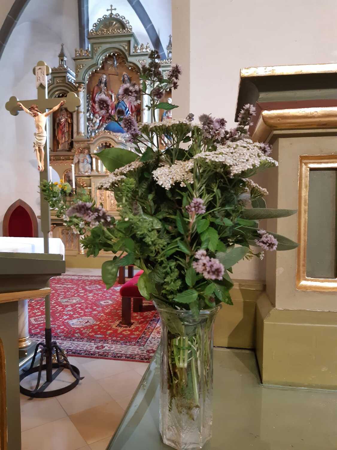 Segne + diese Kräuter und Blumen. Sie erinnern uns an deine Herrlichkeit und an den Reichtum deines Lebens. Schenke uns auf die Fürsprache Mariens dein Heil. Lass uns zur ewigen Gemeinschaft mit dir gelangen und dereinst einstimmen in das Lob der ganzen Schöpfung, die dich preist durch deinen Sohn Jesus Christus in alle Ewigkeit. Amen.