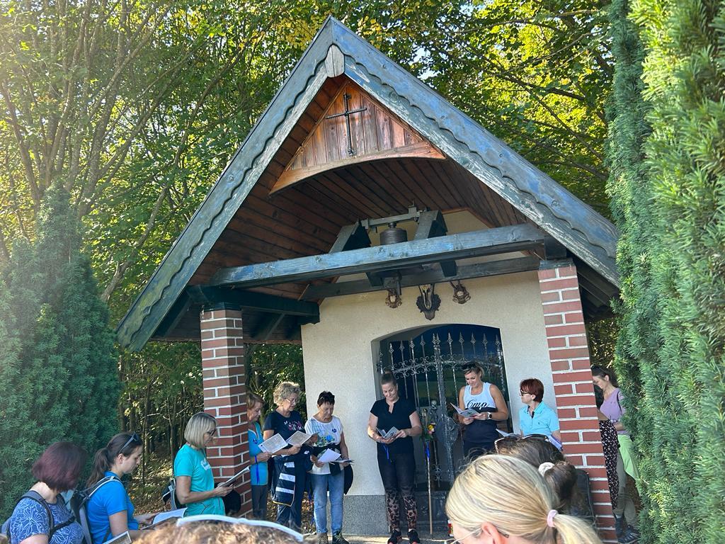 Bei der 1. Station ein Marterl mit einer Pietastatue wurden meditative Gedanken und Gebete gelesen und ein Marienlied gesungen. Danach ging es weiter Richtung Lindgraben zum Ökumenischen Kreuz. Bei zwei weiteren Stationen war Zeit zum Innehalten. Angeleitet durch meditative Texte, Gesprächsanregungen bzw. auch in Stille nachzudenken ging es weiter bis zur Florianikapelle.
