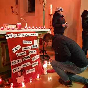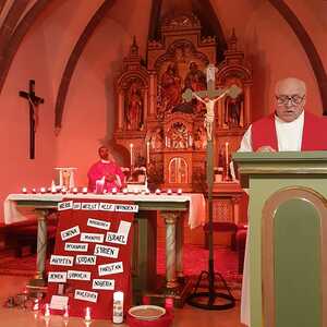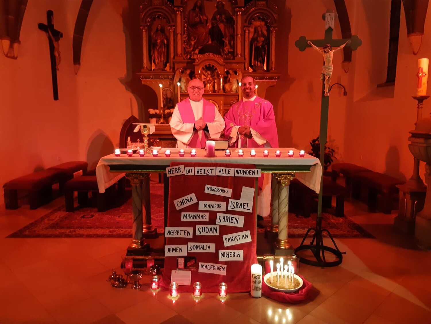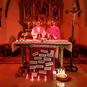 Am Freitag Abend folgte der so wichtige zweite Teil - die Eucharistie. Pfarrer Shinto, Altpfarrer Mück und der ganze Pfarrverband haben in einer sehr berührend gestalteten Messe unserer verfolgten Schwestern und Brüder gedacht, aber auch die Täter der Liebe Gottes übergeben.