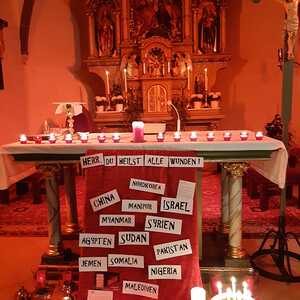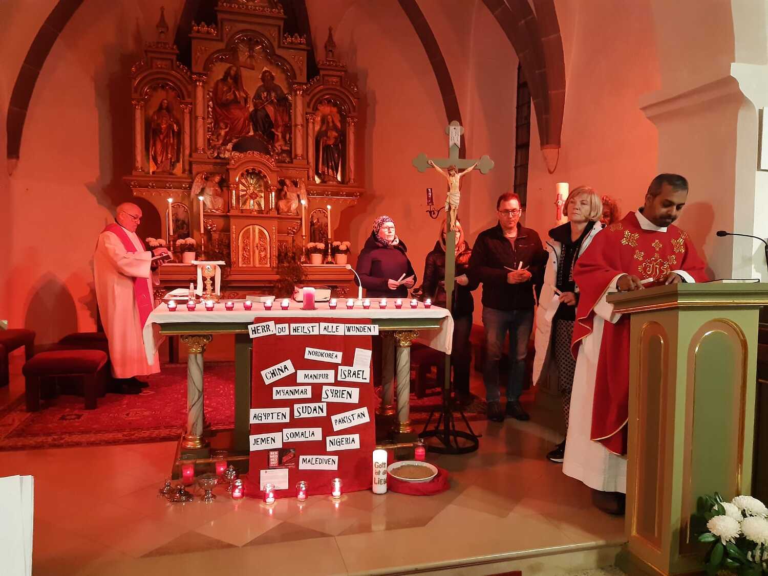 Auch der extra dafür gestaltete Kircheninnenraum und passsende Lieder versetzte die Gläubigen in eine besondere geschwisterliche Verbindung mit dem leidenden Volk Gottes.