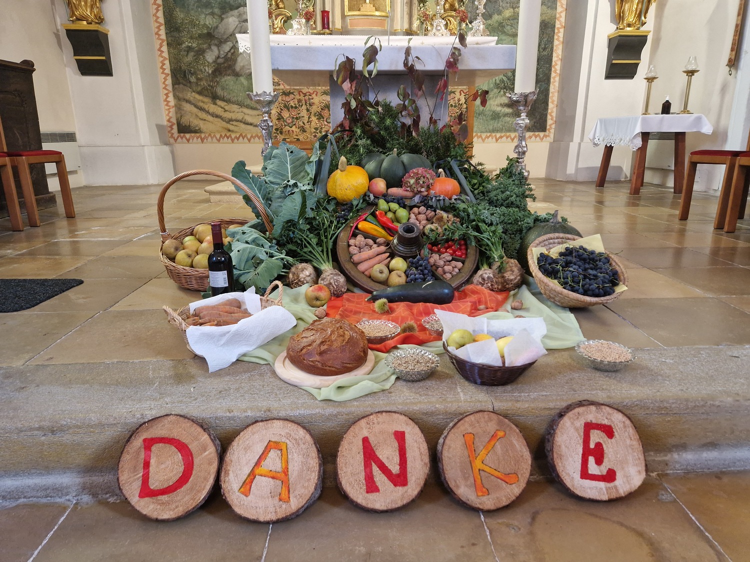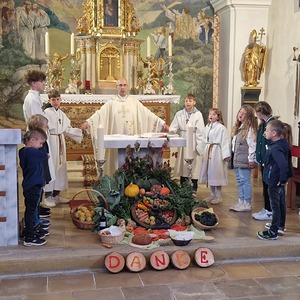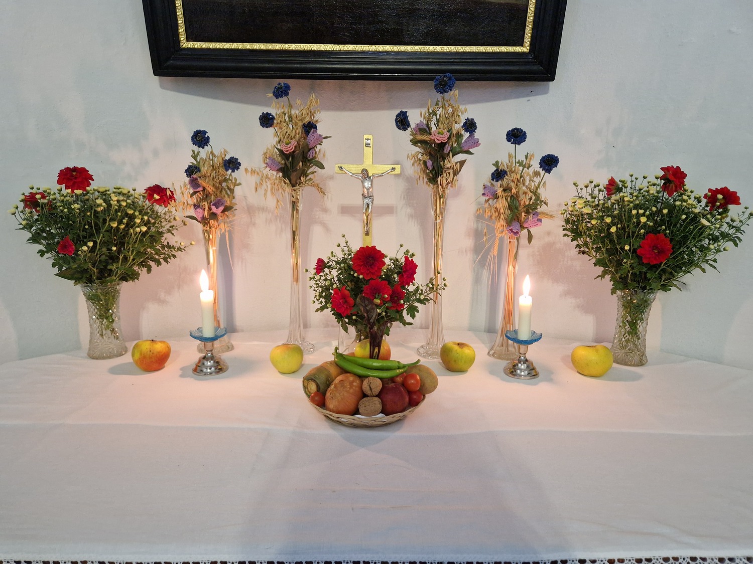 Aus Dankbarkeit feierten wir wieder das Erntedankfest. Pfarrer Gregor erzählte von den Sonnenblumen. Die Kinder und Sänger/innen gestalteten die Eucharistiefeier mit. Anschließend fand die Agape diesmal bei kühlem Wetter im Pfarrhof statt.