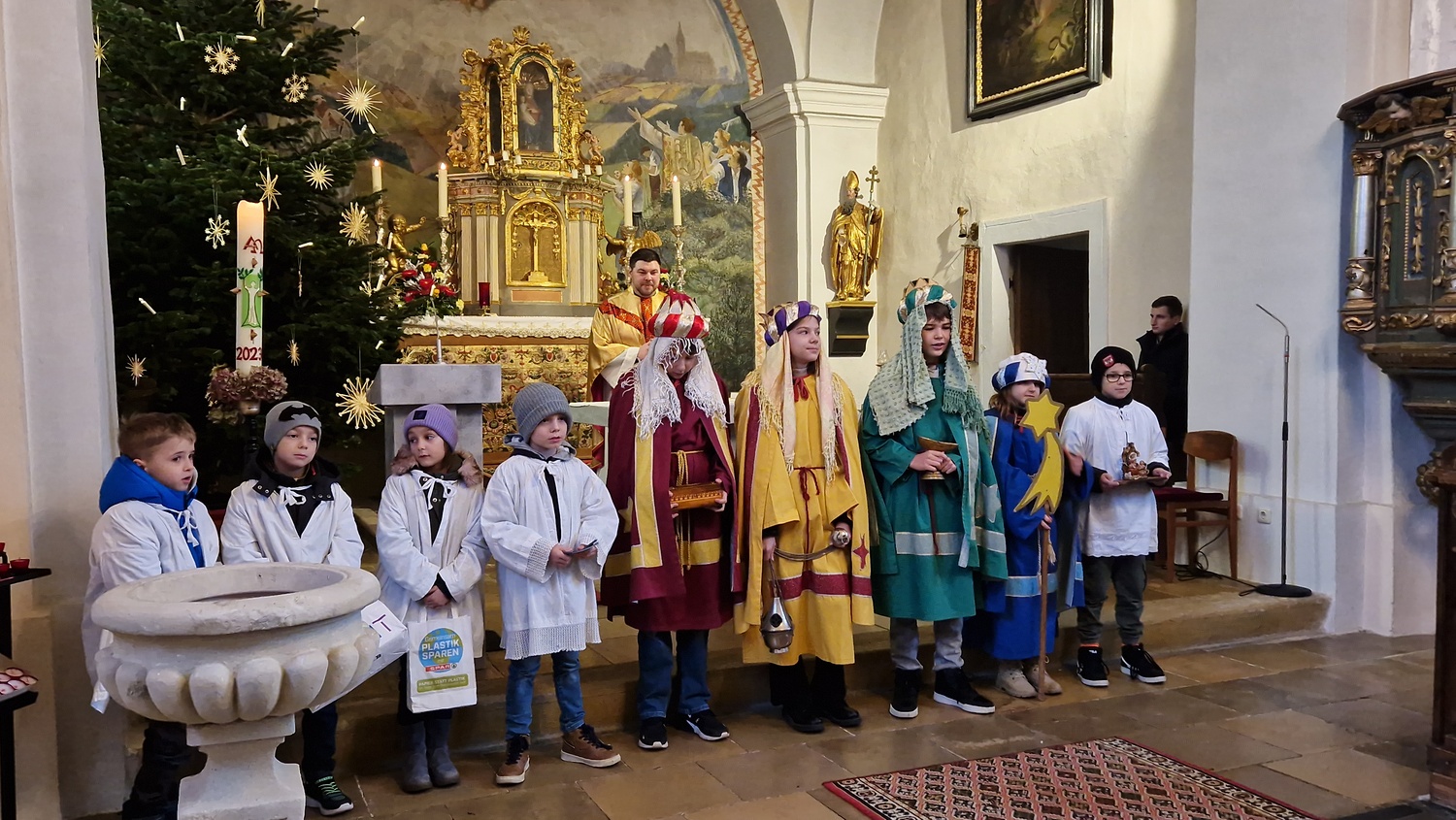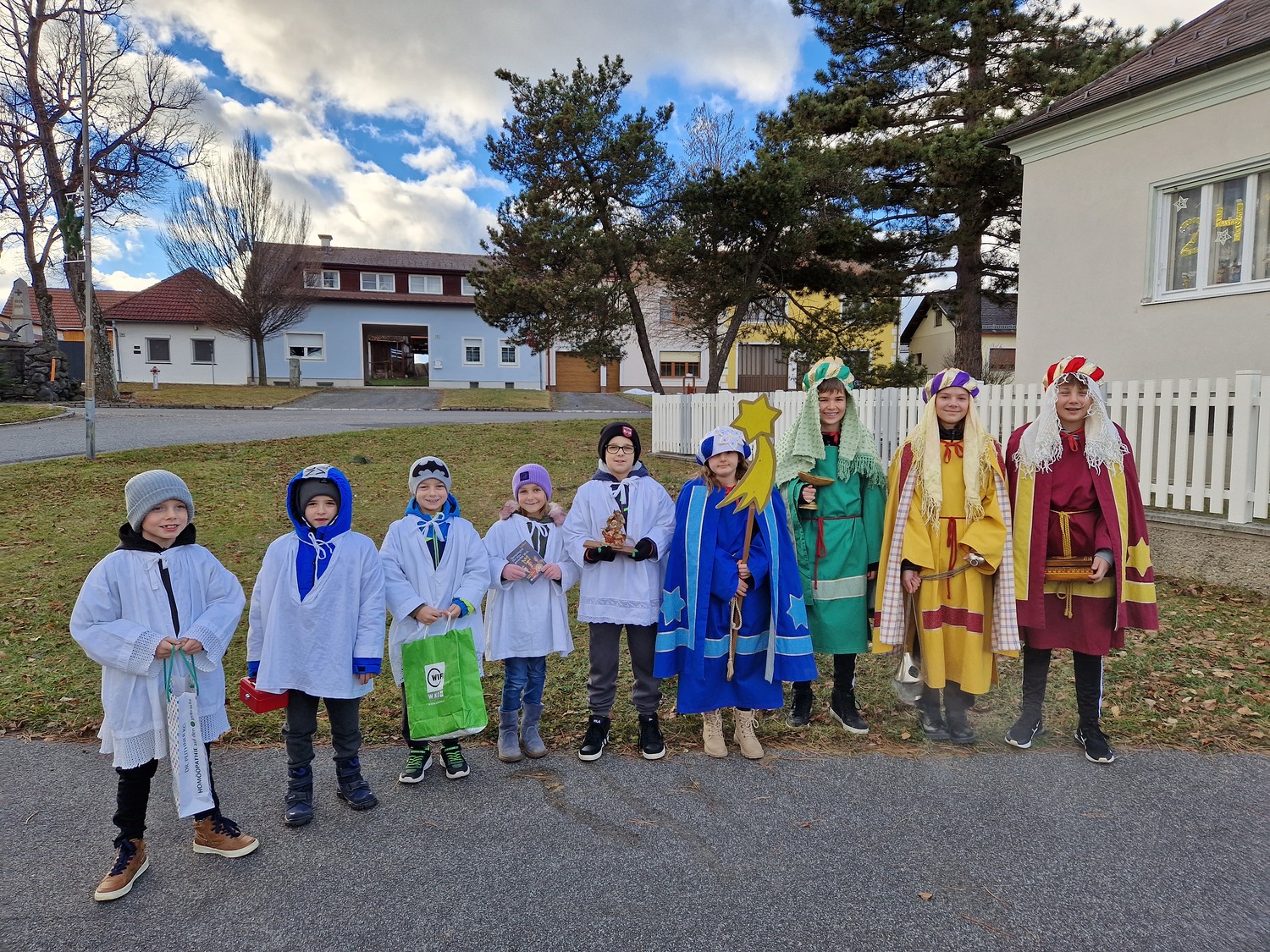 Die Ministranten und heurigen Erstkommunion-Kinder setzten ein Zeichen - für eine gerechte Welt. Bei angenehmen Temperaturen besuchten sie die Häuser in Landsee und Blumau um Spenden für die Dreikönigsaktion zu sammeln.