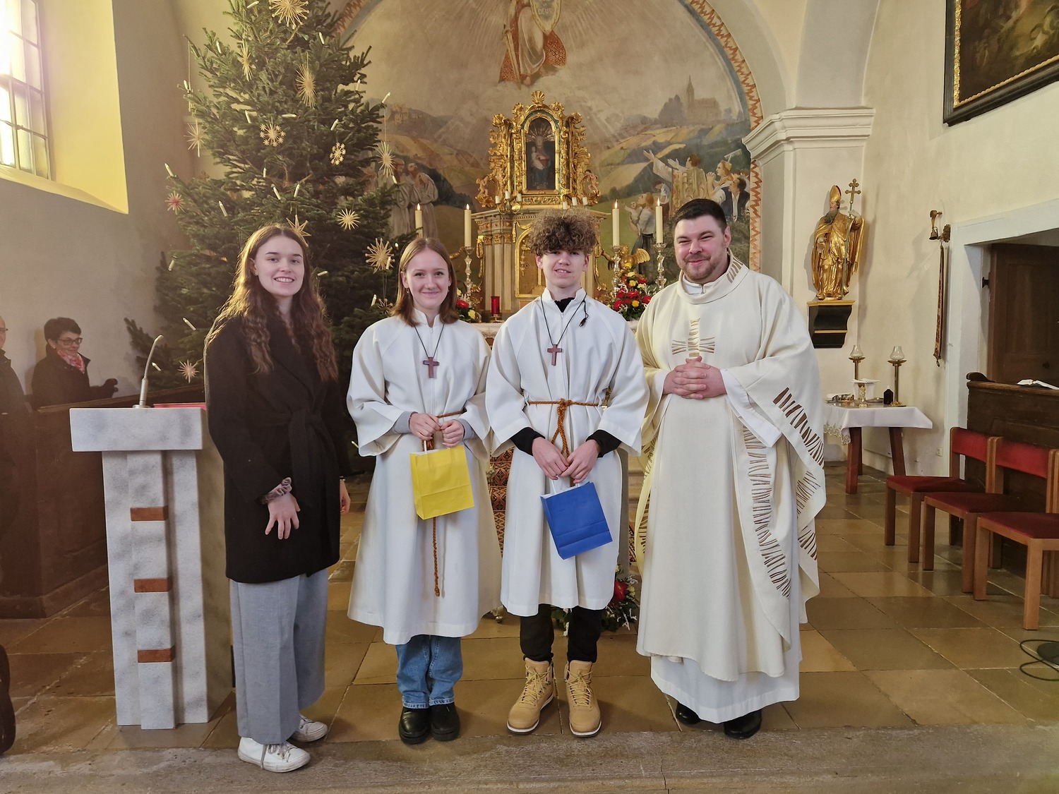 Gute acht Jahre haben Sophie Schütz und Jakob Reisner ihren Dienst als Ministranten getan. Die Pfarrgemeinde darf sich nun sehr herzlich für die tolle Arbeit bedanken. Wir wünschen weiterhin alles Gute und Gottes Segen auf dem weiteren Lebensweg!