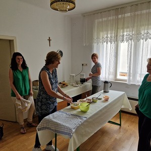 Zum zweiten Mal wurde vom Pfarrgemeinderat zum Pfarrkaffee in den Pfarrhofgarten eingeladen. Bei Kaffee und Kuchen wurden nette Gespräche geführt.