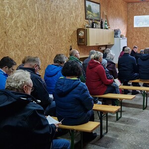 Beim Blumauer Kirtag stürmte und regnete es heftig. Einige Messbesucher trotzten dem Wetter und fanden sich im naheliegenden Stadel zur Feier der Hl. Messe mit Pfarrer Renner ein. Nach der Messfeier luden die Blumauer/innen traditionell zur Agape ein.