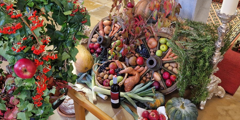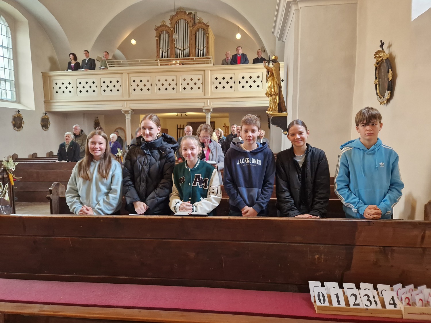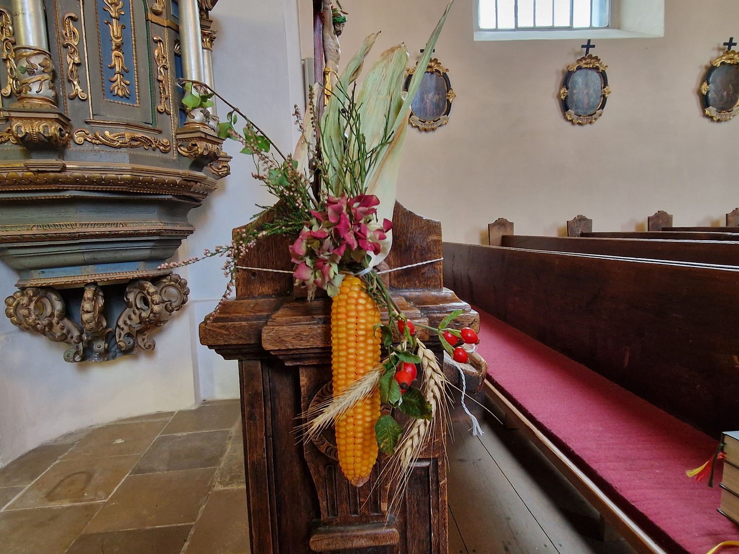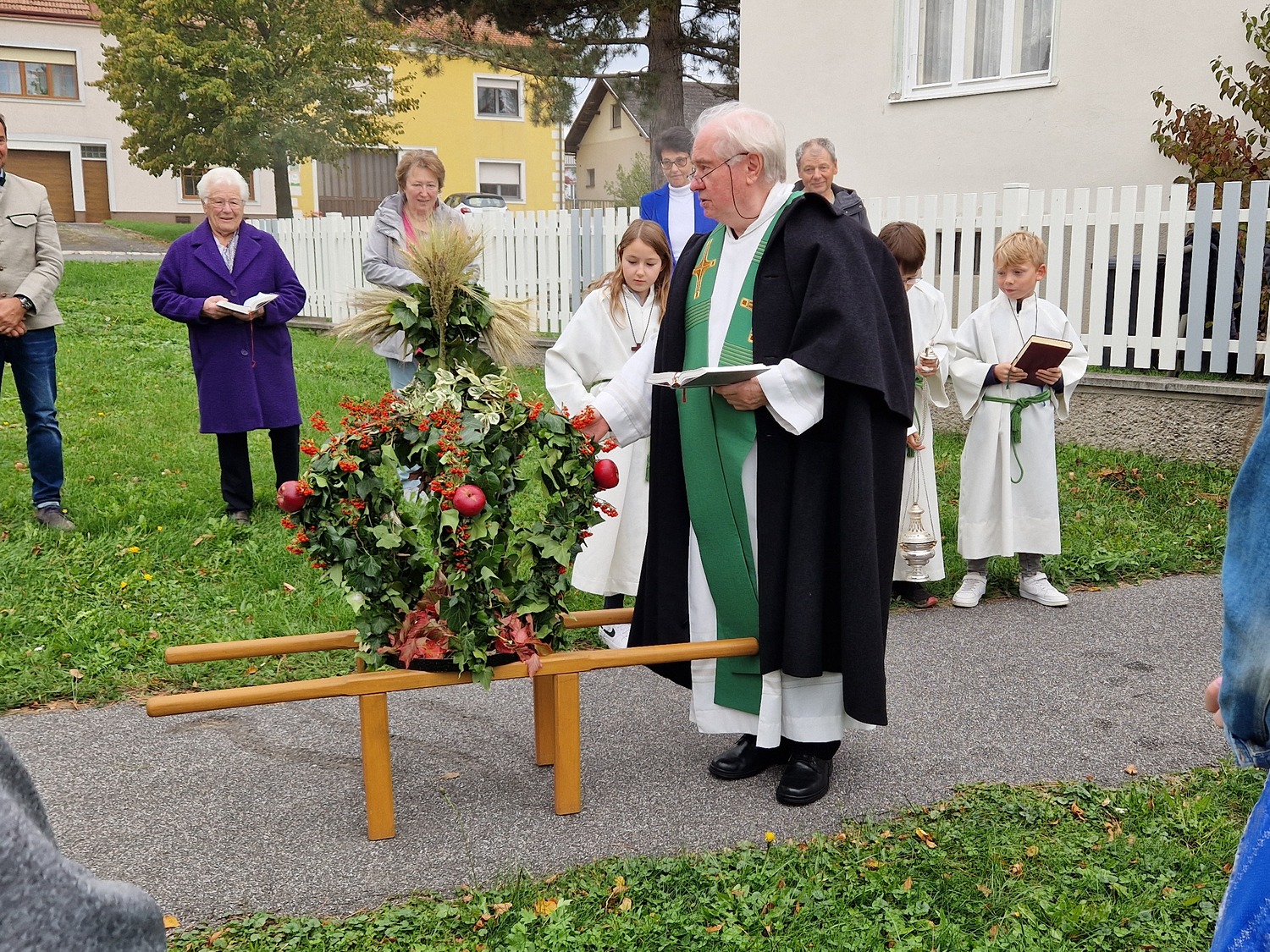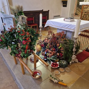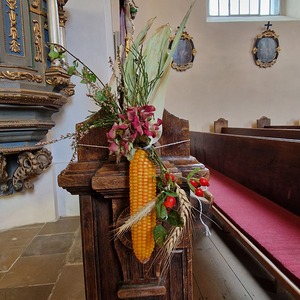 Für die Erntedankfeier wurde die Kirche mit viel Obst und Gemüse geschmückt. Beim feierlichen Einzug mit Erntekrone und Gaben hatten die Kinder und Firmlinge alle Hände voll zu tun. Nach der Eucharistiefeier konnten bei der Agape nette Gespräche geführt werden.